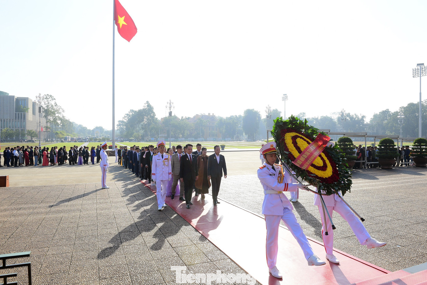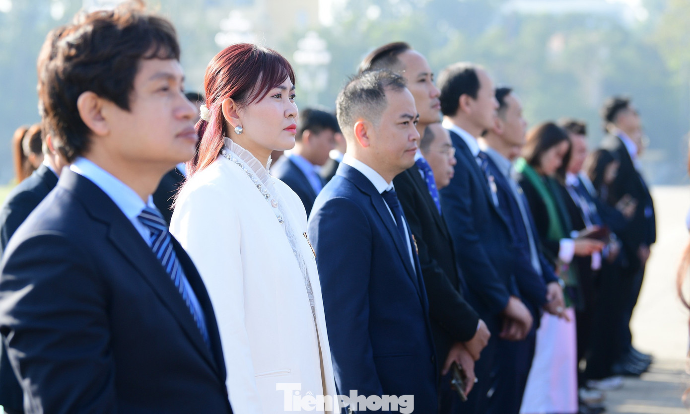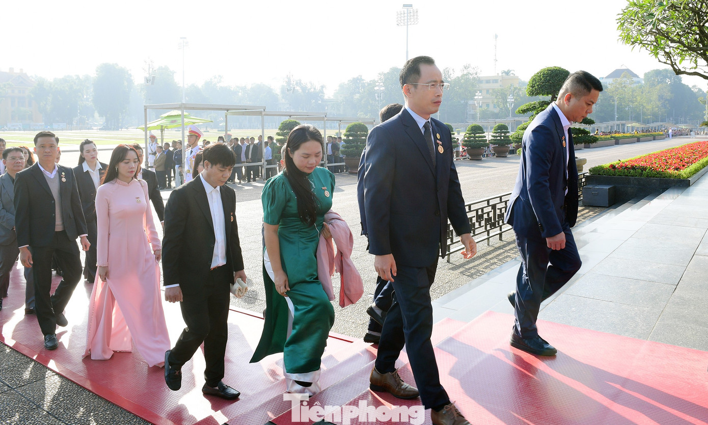 Đoàn đại biểu Đại hội đặt vòng hoa và vào Lăng viếng Chủ tịch Hồ Chí Minh. Ảnh: Xuân Tùng