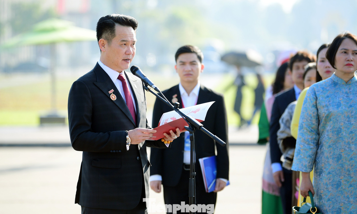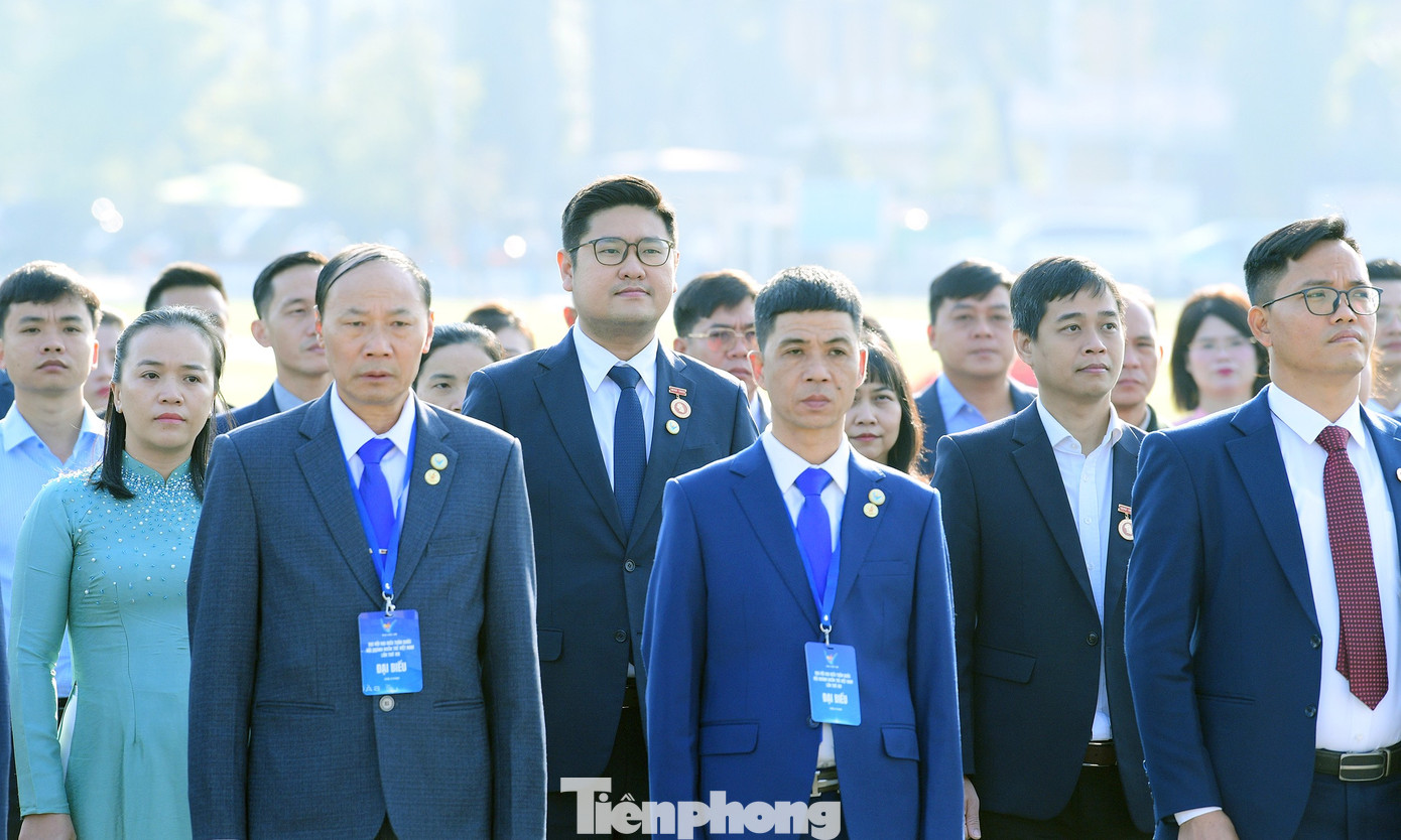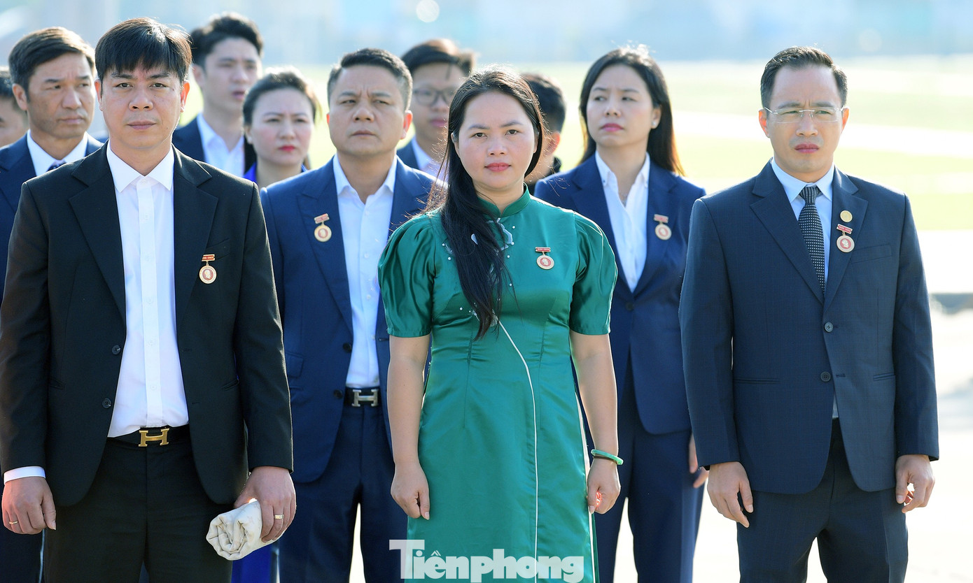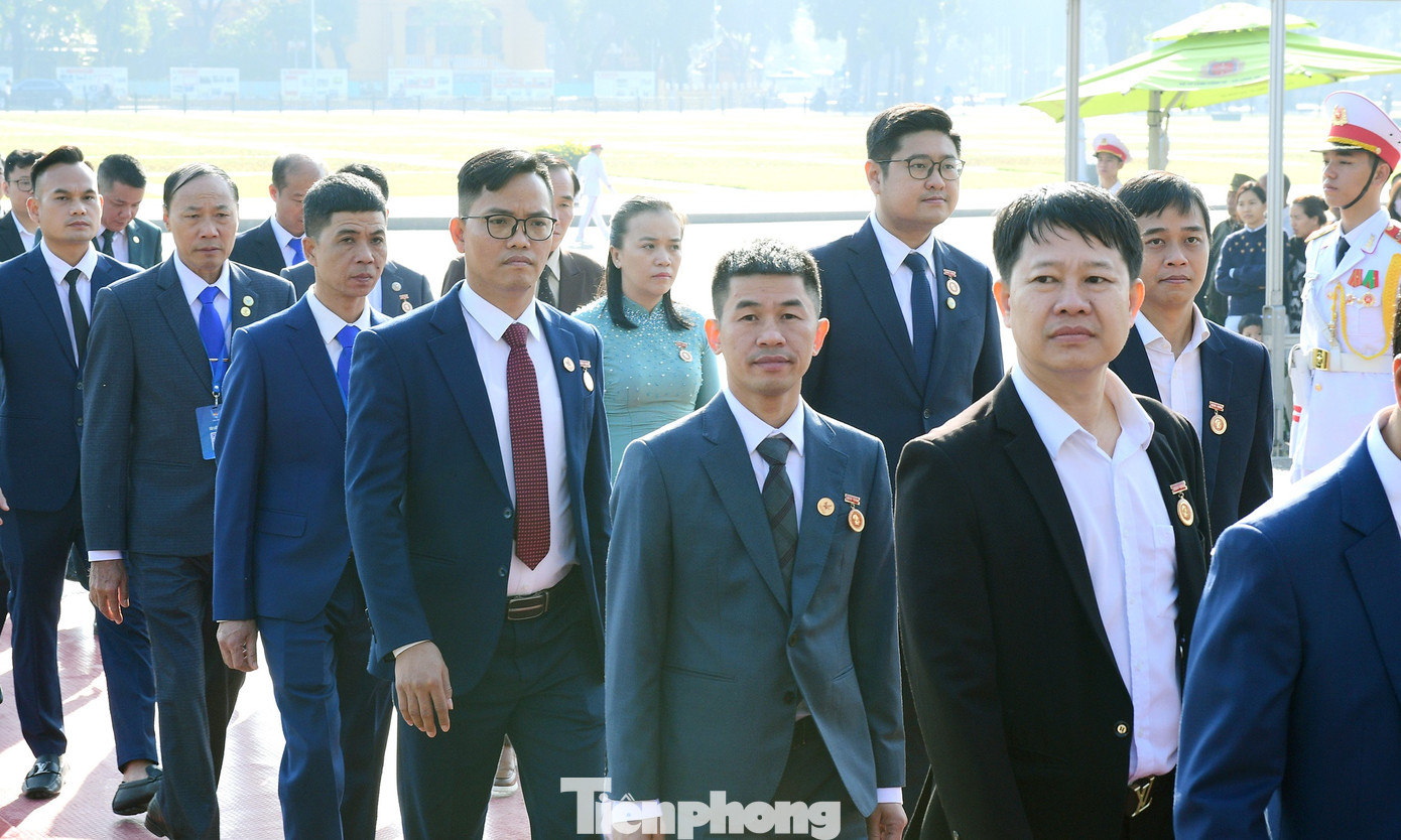 Đại biểu Đại hội Hội Doanh nhân trẻ Việt Nam toàn quốc lần thứ VIII tại lễ báo công dâng Bác. Ảnh: Xuân Tùng