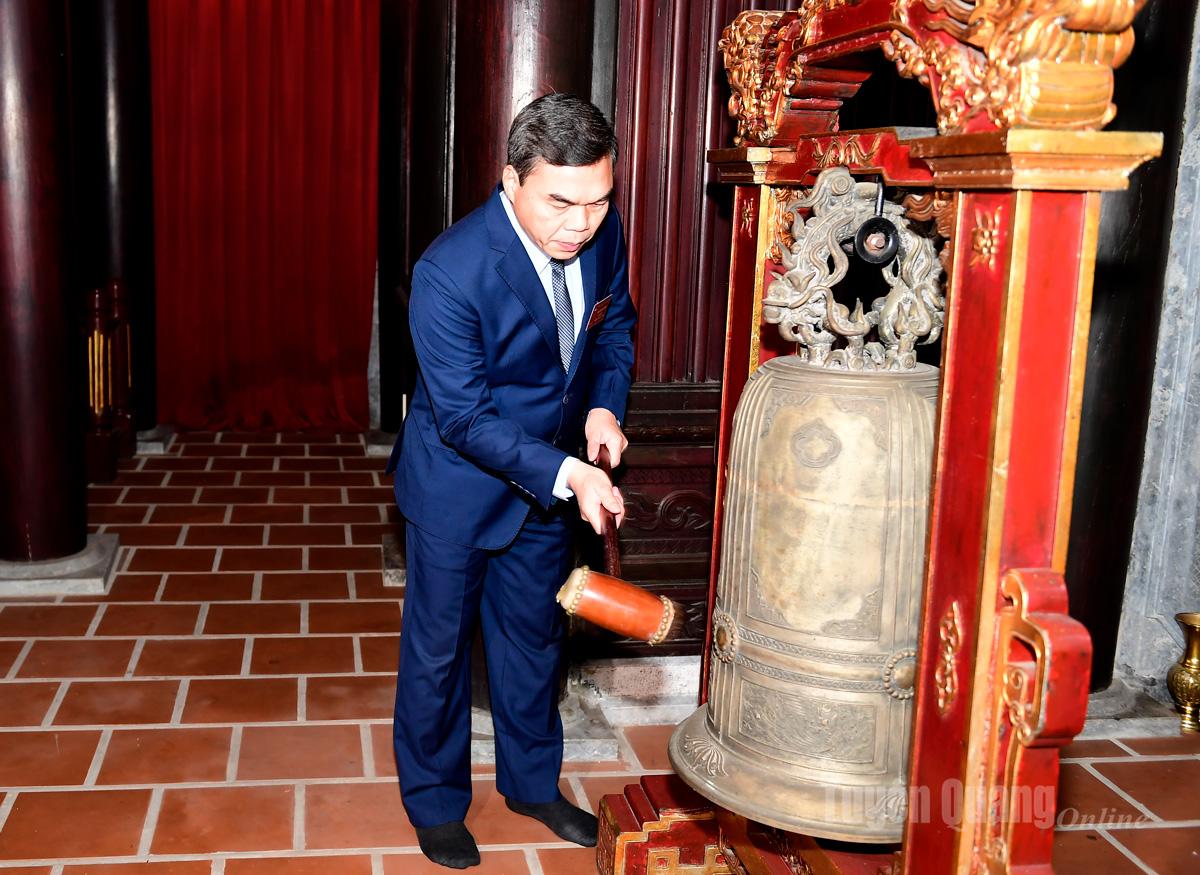 Đồng chí Ma Thế Hồng, Phó Bí thư Tỉnh ủy, Chủ tịch Ủy ban MTTQ Việt Nam tỉnh thỉnh chuông khai lễ.