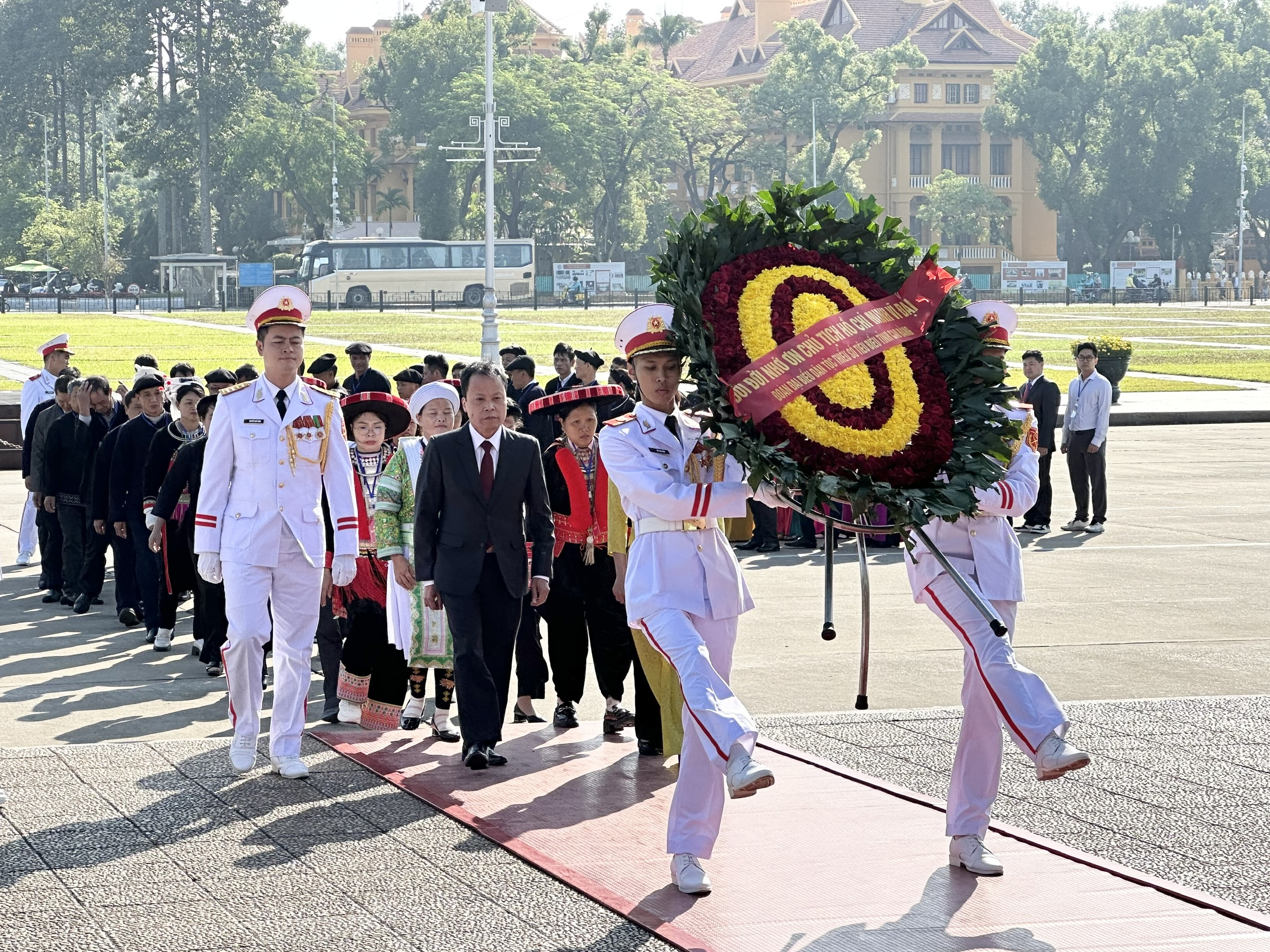 Đoàn đại biểu dân tộc thiểu số tiêu biểu tỉnh dâng hoa và viếng lăng Chủ tịch Hồ Chí Minh.