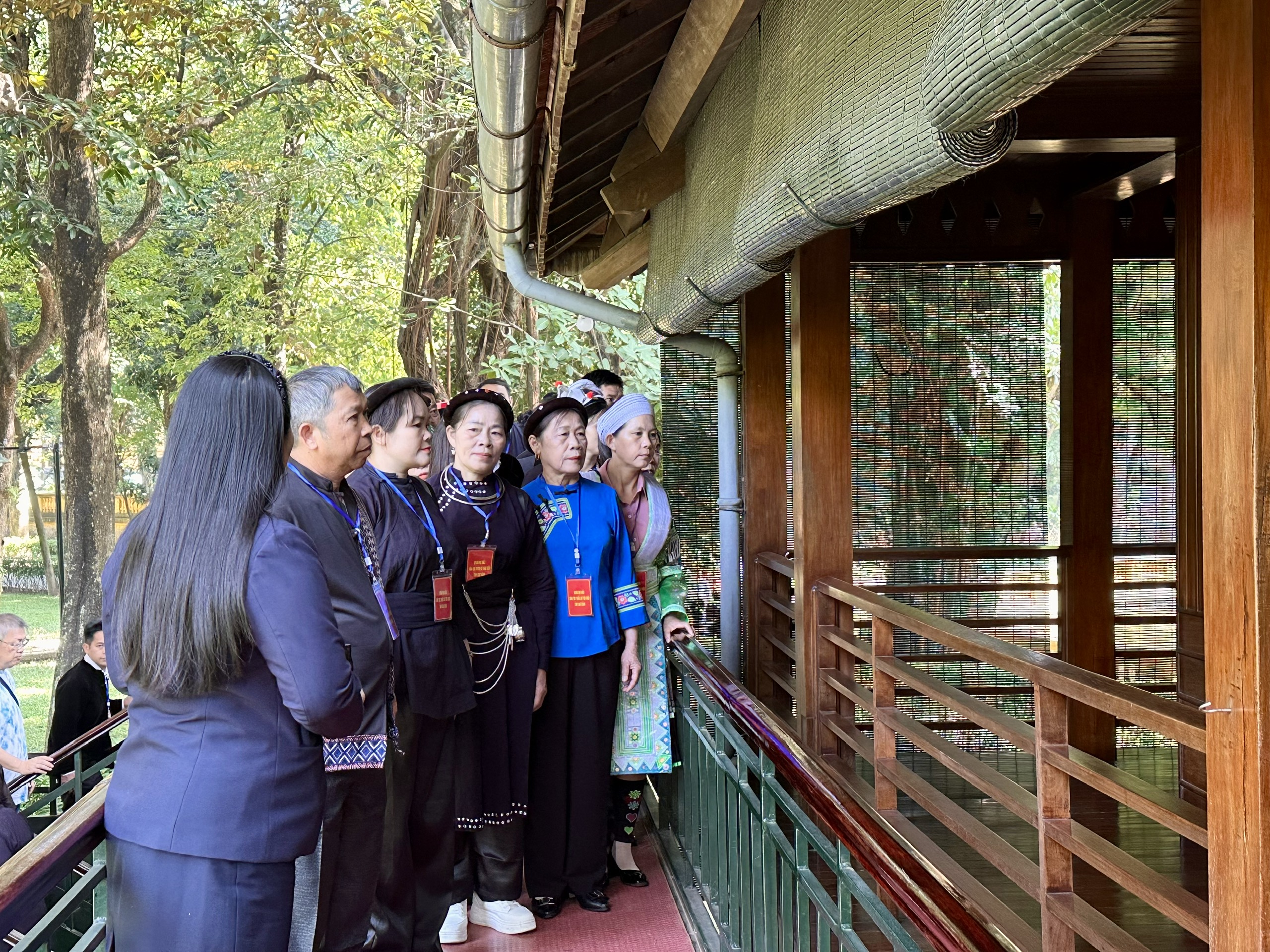 Đoàn đại biểu dân tộc thiểu số tiêu biểu tỉnh tham quan Nhà sàn Bác Hồ, Khu Di tích Chủ tịch Hồ Chí Minh tại Phủ Chủ tịch.