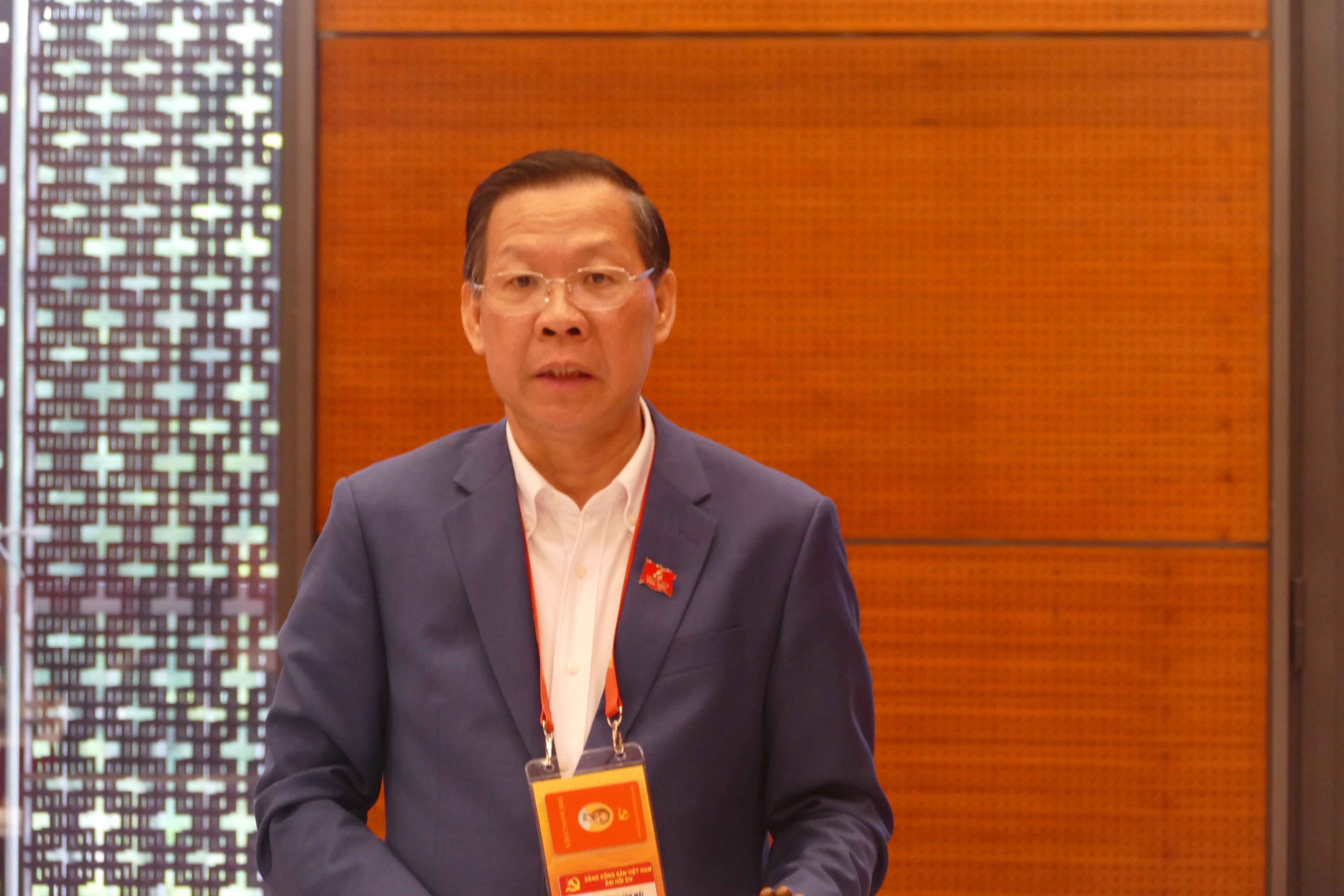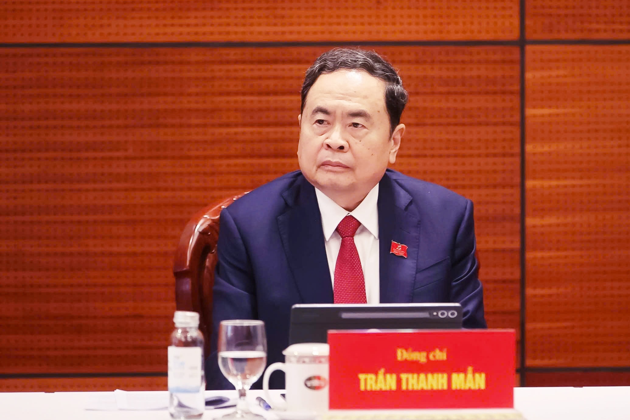 Ủy viên Bộ Chính trị, Bí thư Đảng ủy Quốc hội, Chủ tịch Quốc hội Trần Thanh Mẫn tham dự thảo luận tại Đoàn về các dự thảo văn kiện trình Đại hội XIV . Ảnh: Nhật Bắc