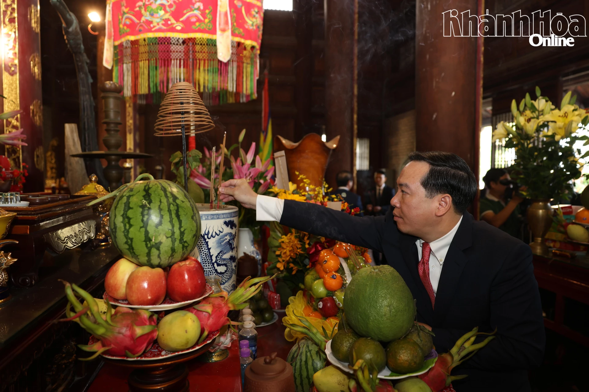 Bí thư Tỉnh ủy Nghiêm Xuân Thành dâng hương tại điện thờ Tháp Trầm Hương.