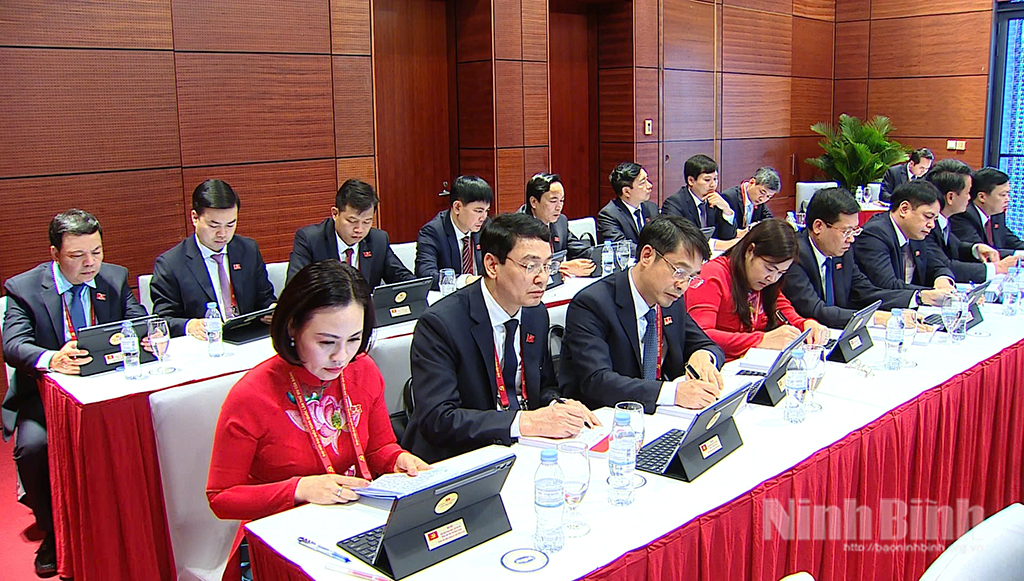 Tham dự thảo luận, Đoàn đại biểu Đảng bộ tỉnh Ninh Bình có các đồng chí: Nguyễn Thị Thu Hà, Ủy viên Trung ương Đảng, Phó Chánh Văn phòng Thường trực Văn phòng Trung ương Đảng; Vũ Hải Quân, Ủy viên Trung ương Đảng, Thứ trưởng Thường trực Bộ Khoa học và Công nghệ; Đinh Thị Lụa, Phó Bí thư Thường trực Tỉnh ủy; Lê Quốc Chỉnh, Phó Bí thư Tỉnh ủy, Chủ tịch HĐND tỉnh; Trần Huy Tuấn, Phó Bí thư Tỉnh ủy, Chủ tịch UBND tỉnh; Mai Văn Tuất, Phó Bí thư Tỉnh ủy, Chủ tịch Ủy ban MTTQ Việt Nam tỉnh…