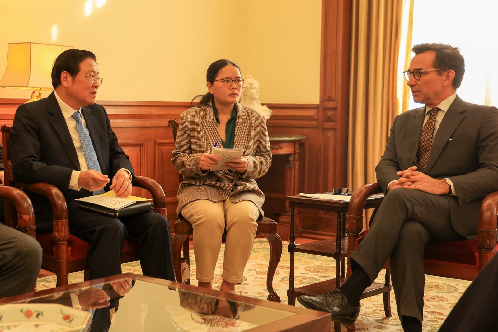 Gặp gỡ và làm việc với Tổng Bí thư Đảng Cộng sản Bồ Đào Nha Paulo Raimundo. Ảnh: Bộ Ngoại giao cung cấp.