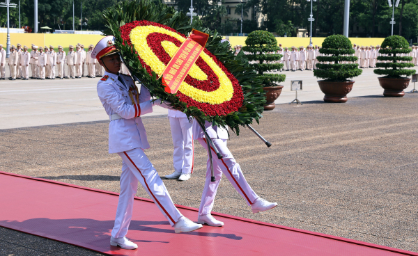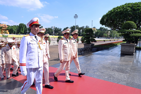 Đoàn đại biểu Đảng ủy Công an Trung ương, Bộ Công an đã đặt vòng hoa, vào Lăng viếng Chủ tịch Hồ Chí Minh.