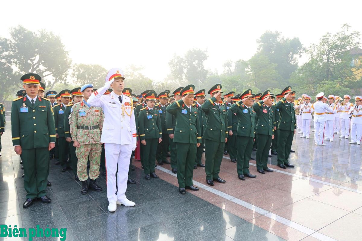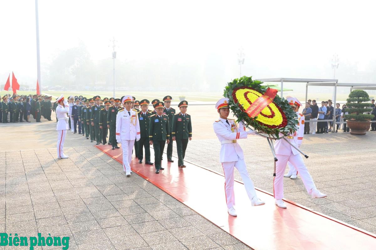 Tiếp đó, Thượng tướng Lê Quang Minh cùng đoàn đại biểu đã dự Lễ báo công dâng Bác và dâng hoa tưởng nhớ, vào Lăng viếng Chủ tịch Hồ Chí Minh.