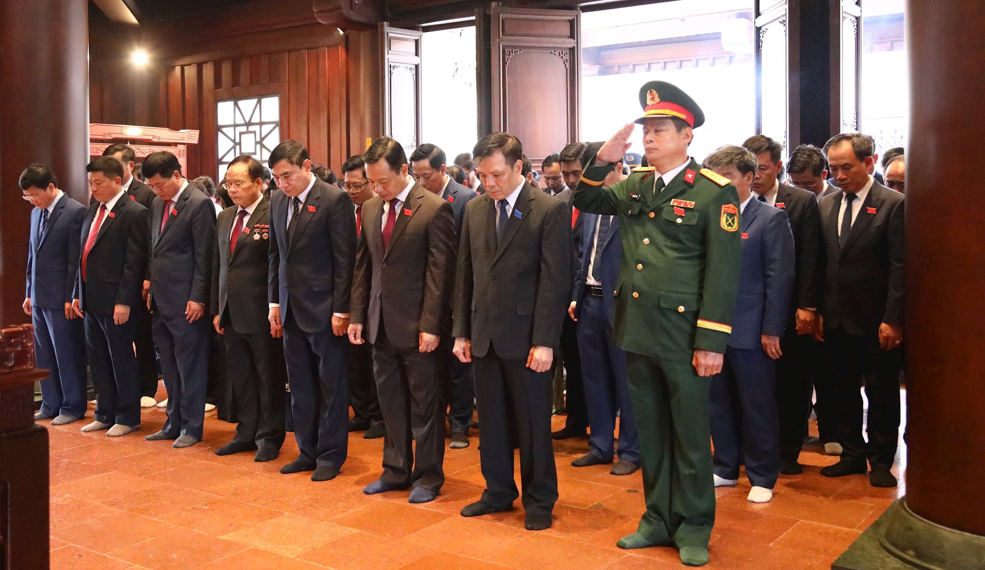 Đồng chí Trần Quốc Cường, Bí thư Tỉnh ủy và các Đại biểu dâng hương tại Đền thờ Liệt sĩ.