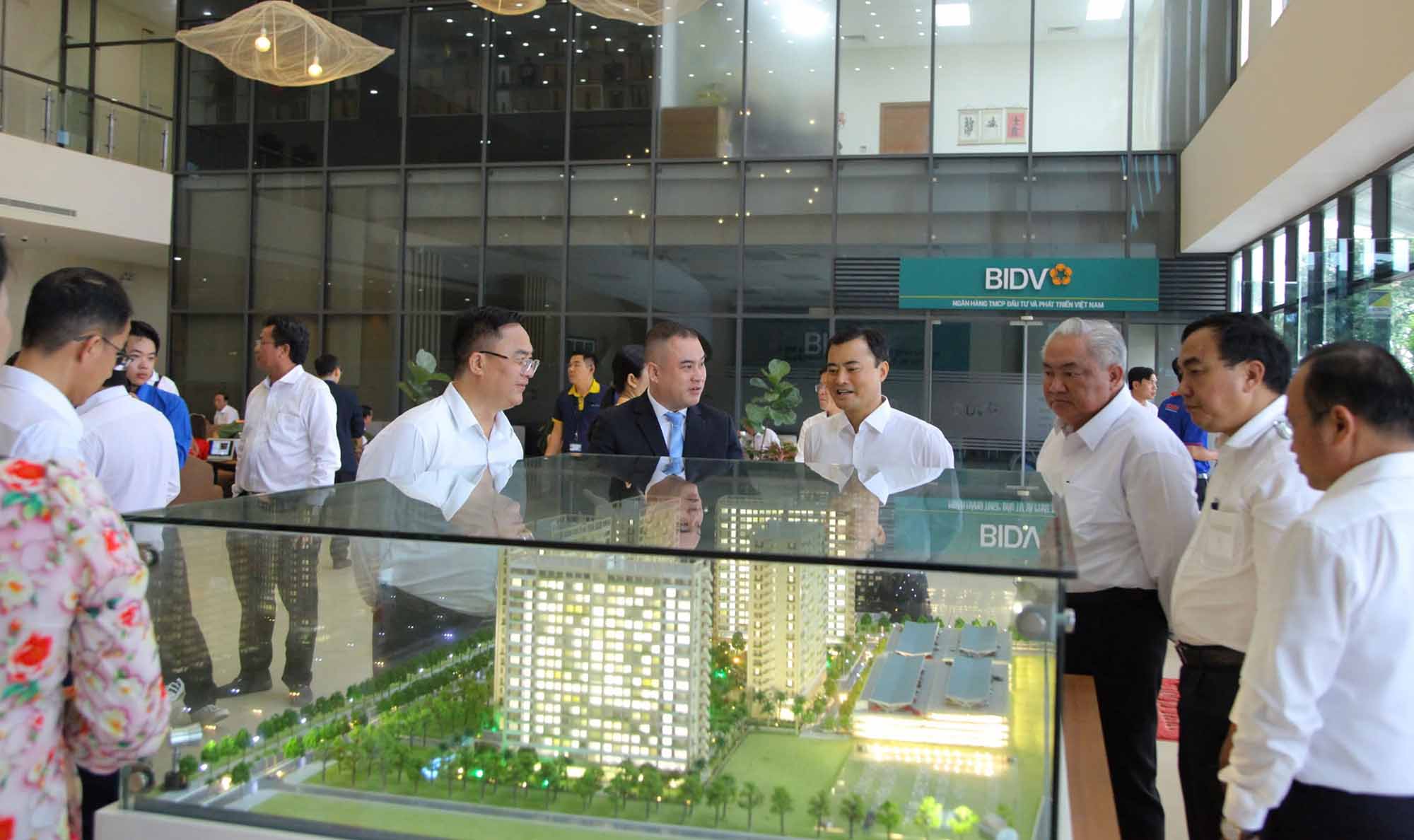 Lãnh đạo Công ty cổ phần Thanh Bình Phú Mỹ giới thiệu dự án nhà ở cho công nhân tại khu công nghiệp với đoàn Đại Biểu dự Đại hội Đảng bộ TP.HCM.