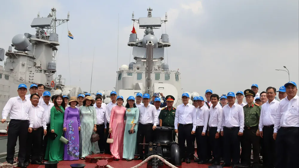 Đoàn đại biểu TP.HCM tham quan Lữ đoàn 167 thuộc Vùng 2 Hải quân. Ảnh: KN