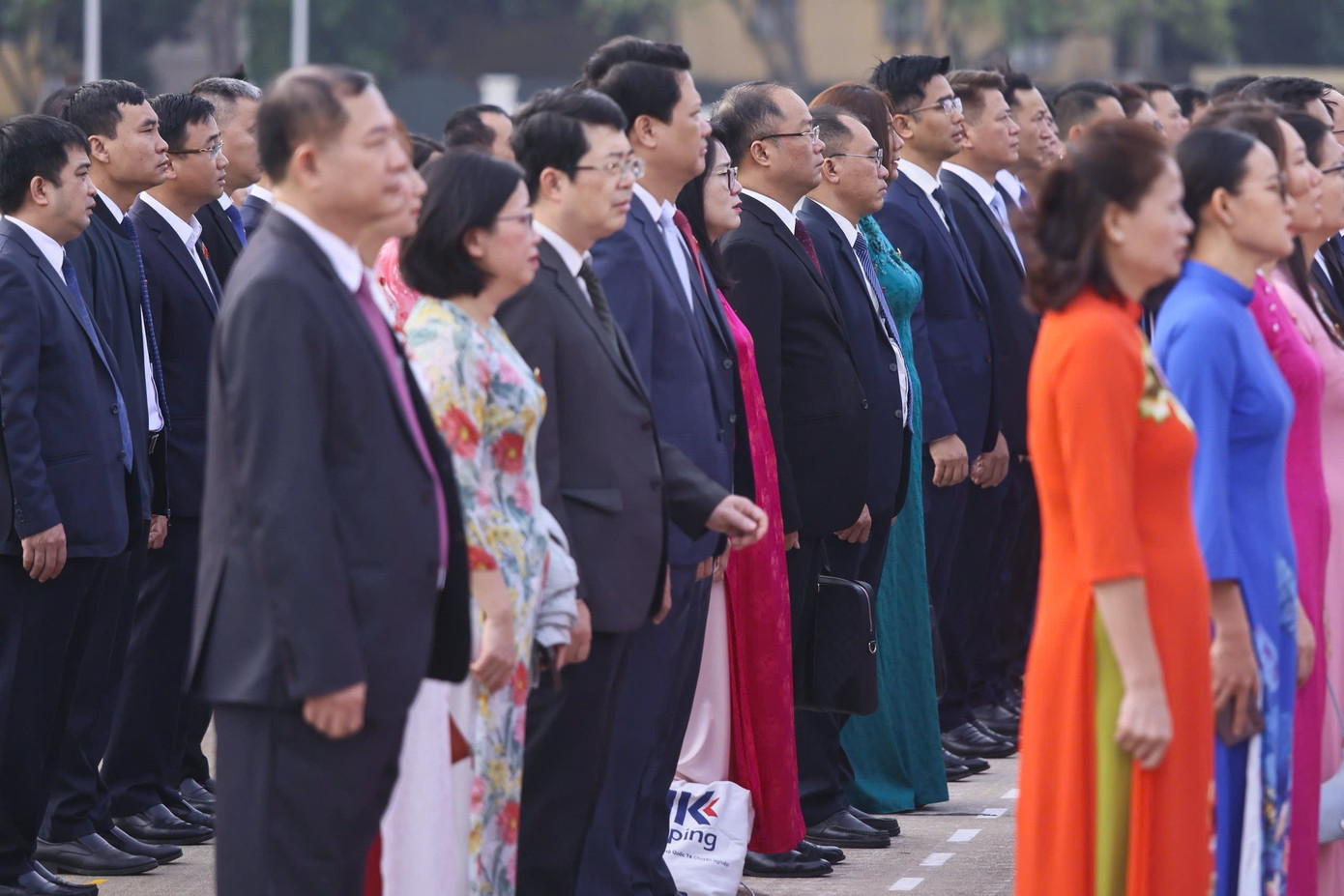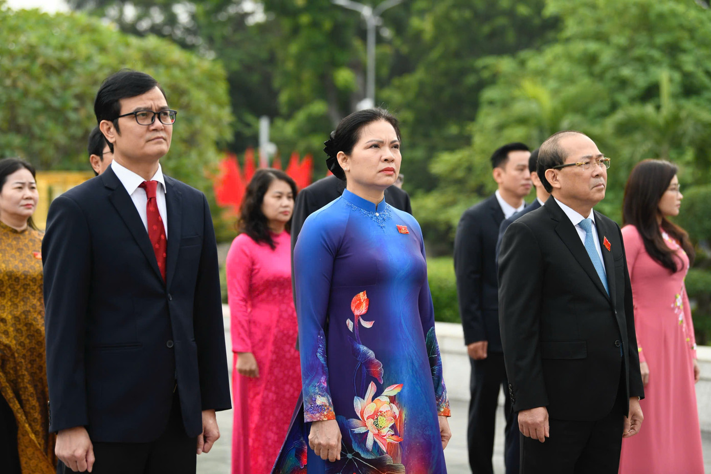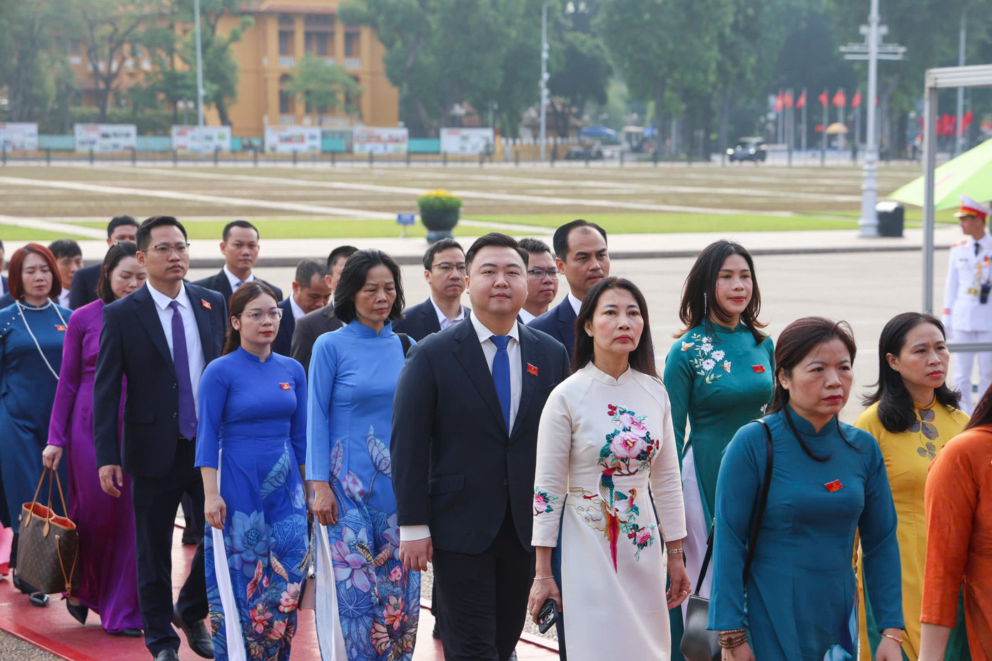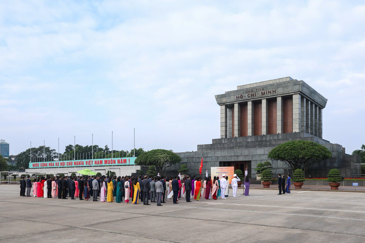 Đoàn đại biểu dự Đại hội thi đua yêu nước Cơ quan Ủy ban Trung ương MTTQ Việt Nam vào Lăng báo công dâng Bác.