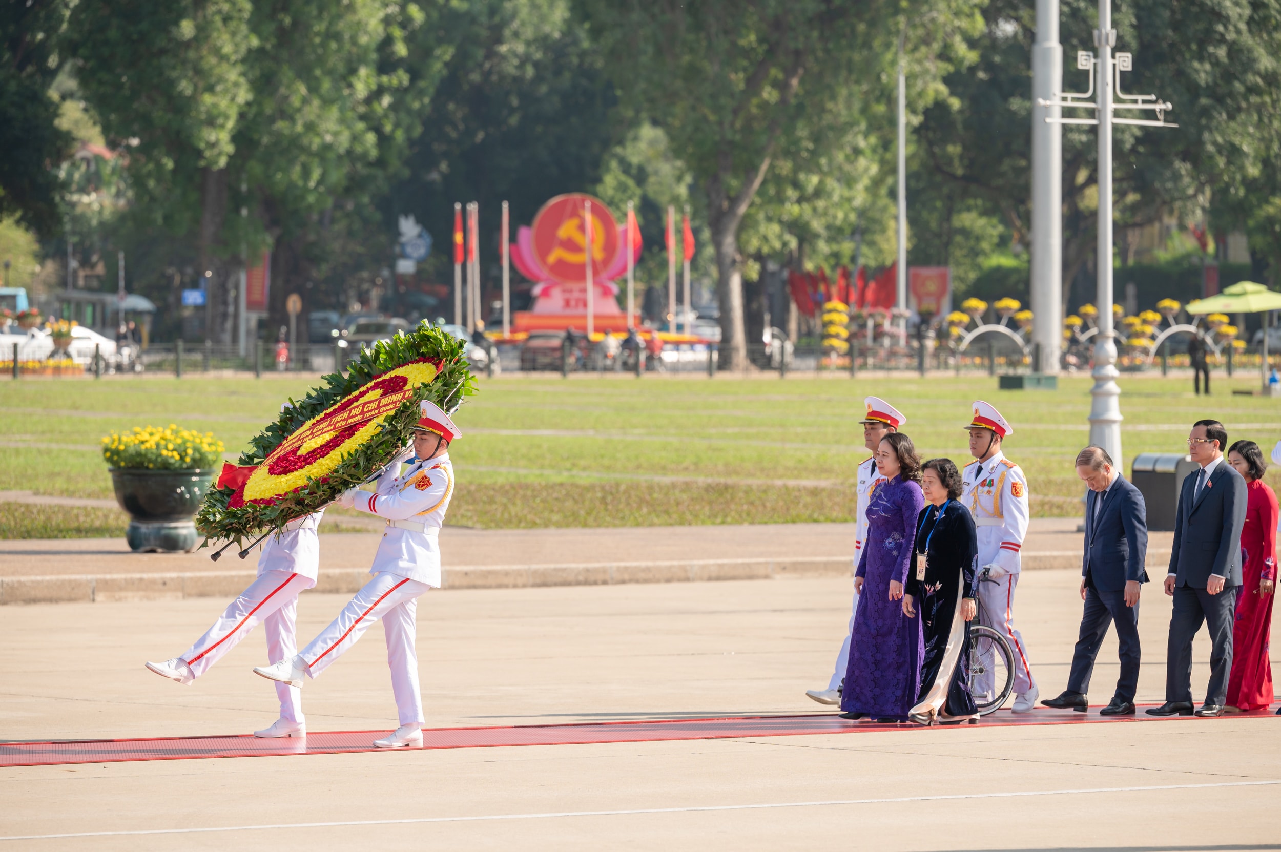 Vòng hoa của Đoàn mang dòng chữ "Đời đời nhớ ơn Chủ tịch Hồ Chí Minh vĩ đại".