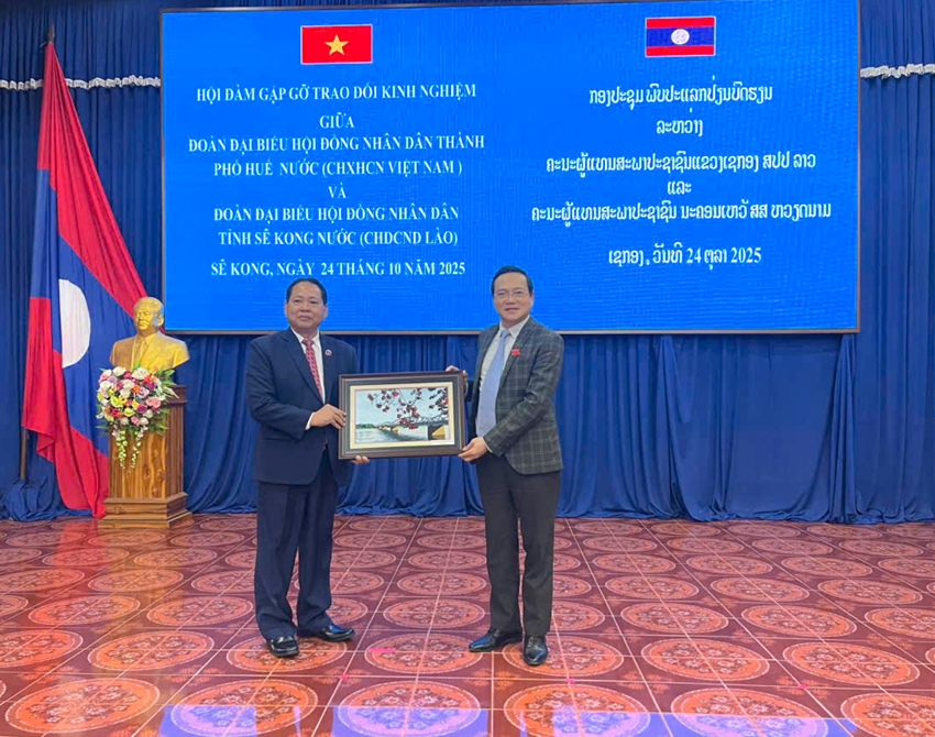 * Trước đó, ngày 24/10, Đoàn đại biểu HĐND thành phố Huế cũng đã có buổi hội đàm, trao đổi kinh nghiệm với Thường trực HĐND tỉnh Sê Kông.