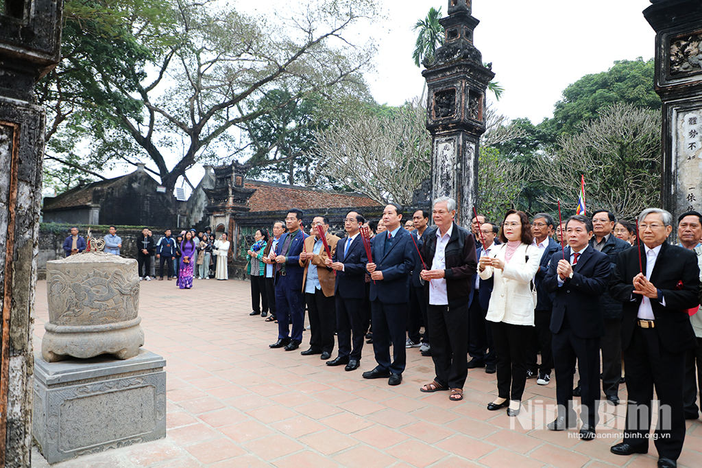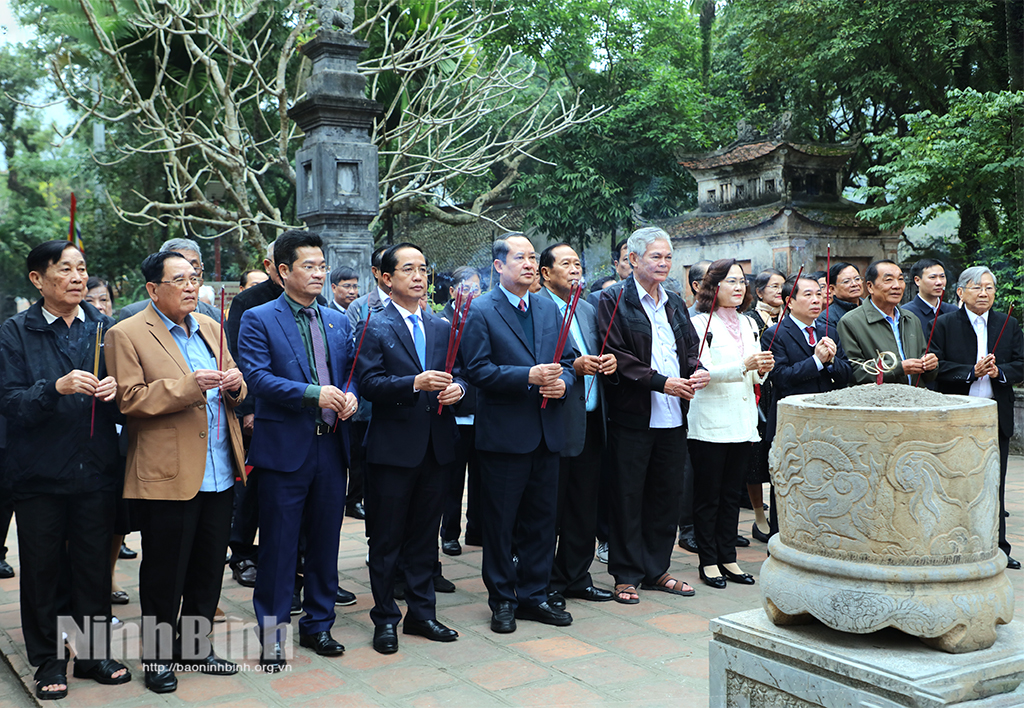 Tại Khu Di tích quốc gia đặc biệt Cố đô Hoa Lư, trong không khí linh thiêng, thành kính, Đoàn đại biểu đã thành kính làm lễ dâng hương tưởng niệm trước linh từ Đức Đinh Tiên Hoàng Đế, Hội đồng Tứ trụ, các bậc văn võ bá quan triều đình, những người có công đánh dẹp 12 sứ quân, lập nên Nhà nước phong kiến trung ương tập quyền đầu tiên ở Việt Nam, mở ra thời kỳ độc lập và phát triển mới lâu dài cho dân tộc.