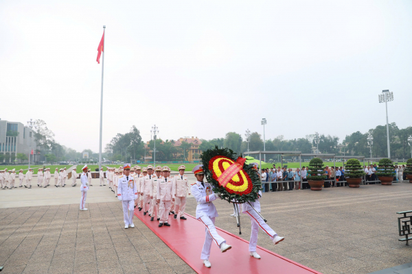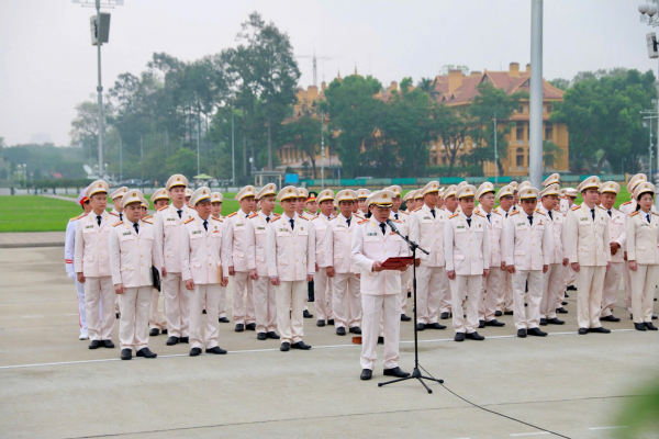 Sáng 11/4, nhân kỷ niệm 80 năm Ngày truyền thống của lực lượng Cảnh sát QLHC về TTXH, Đoàn đại biểu Cục Cảnh sát QLHC về TTXH, Bộ Công an do Thiếu tướng Vũ Văn Tấn, Cục trưởng Cục Cảnh sát QLHC về TTXH làm Trưởng đoàn tổ chức Lễ báo công tưởng nhớ anh linh Chủ tịch Hồ Chí Minh vĩ đại - Danh nhân văn hóa thế giới - người Anh hùng dân tộc.