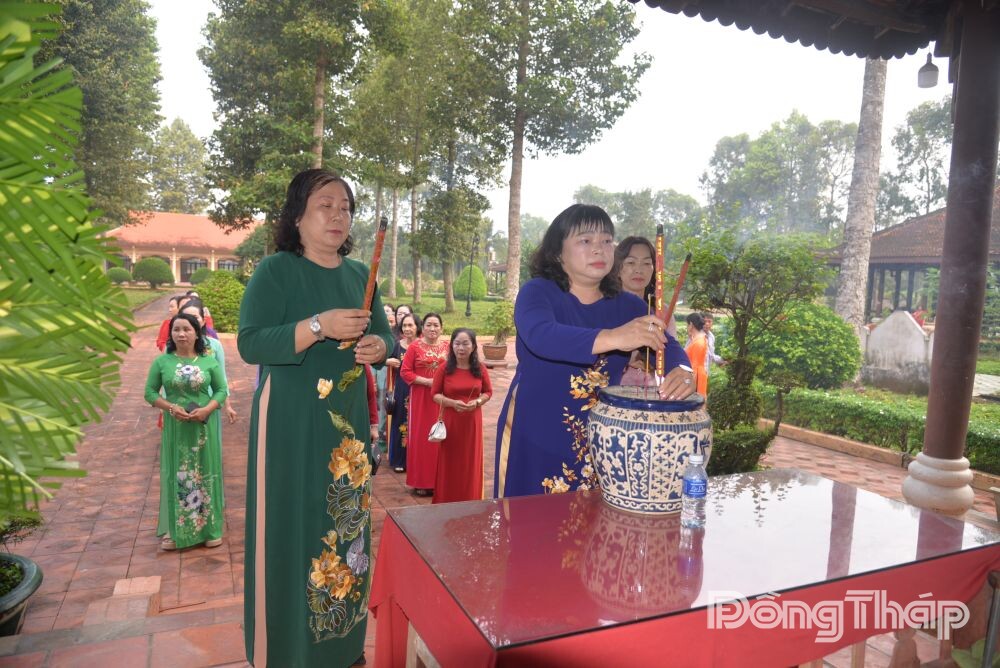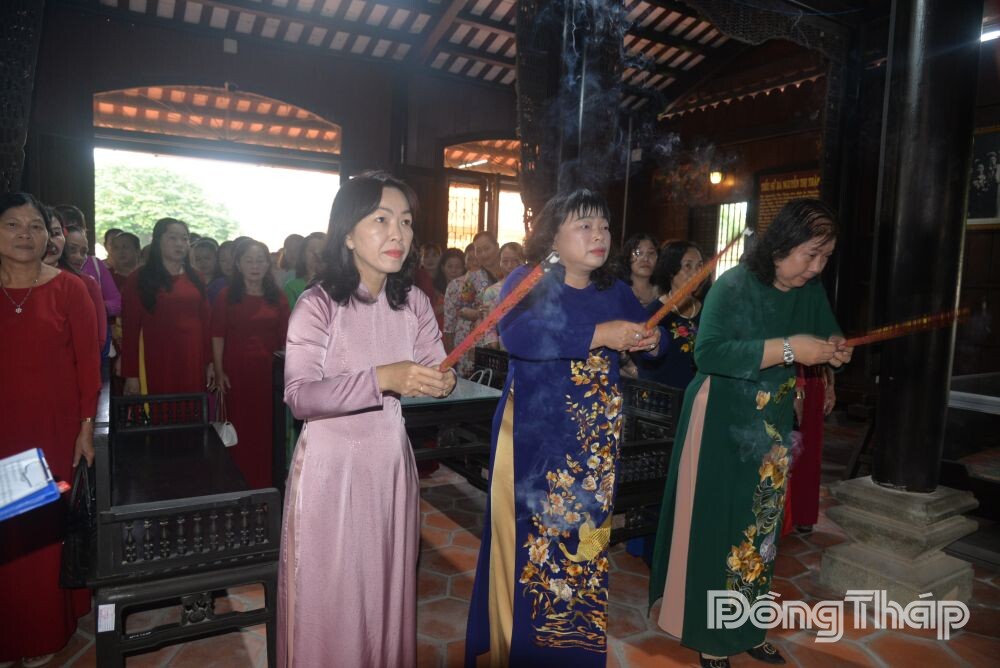 Tiếp đó, Đoàn đến dâng hoa, dâng hương tại Nhà thờ đồng chí Nguyễn Thị Thập, nguyên Chủ tịch Hội Liên hiệp Phụ nữ Việt Nam. Trước anh linh đồng chí, các đại biểu thắp hương bày tỏ lòng biết ơn sâu sắc đối với người lãnh đạo tiền bối đã có nhiều đóng góp to lớn cho sự nghiệp giải phóng phụ nữ và phong trào cách mạng của địa phương.