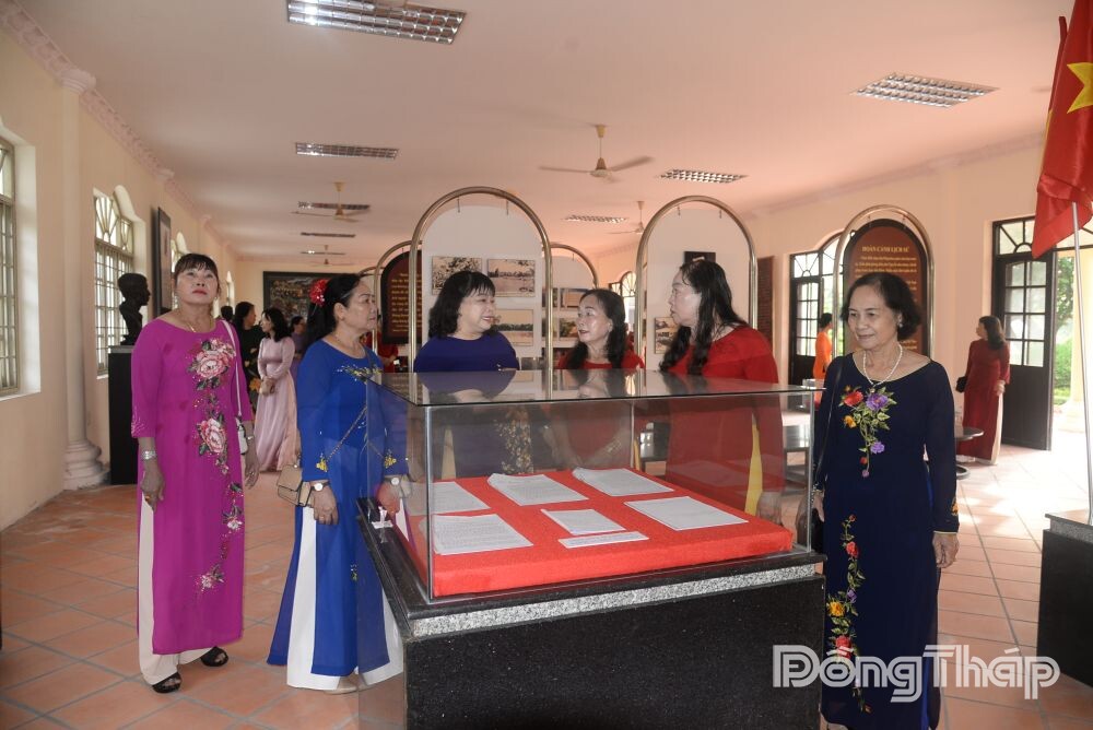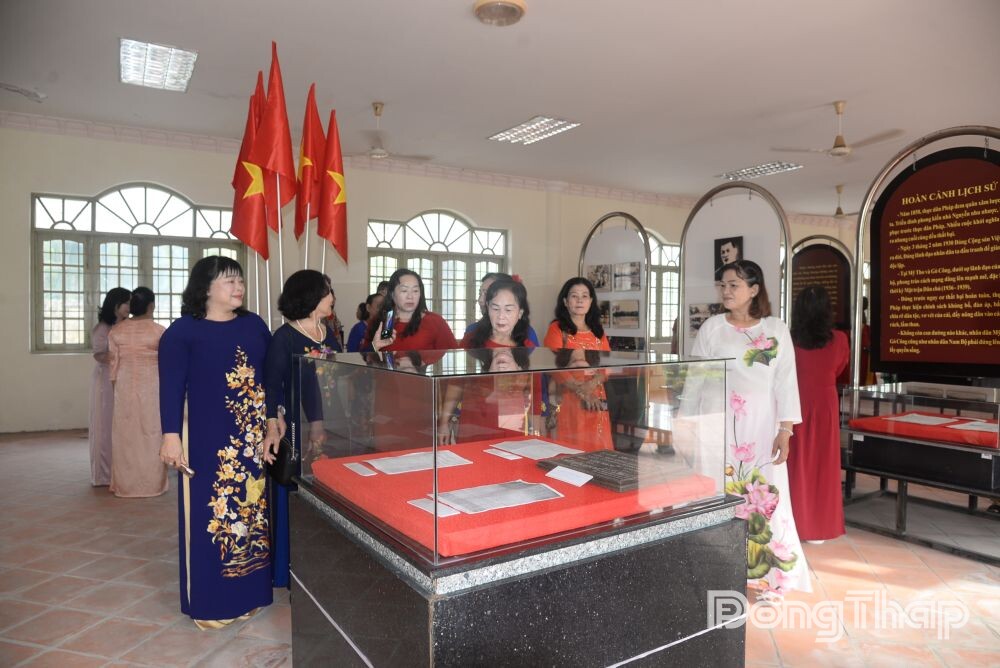 Sau lễ viếng, Đoàn đến tham quan Nhà trưng bày trong khuôn viên Khu di tích. Tại đây, các đại biểu nghe thuyết minh về lịch sử cuộc Khởi nghĩa Nam Kỳ, tham quan các hình ảnh, hiện vật quý giá gắn liền với di tích lịch sử cấp quốc gia.
