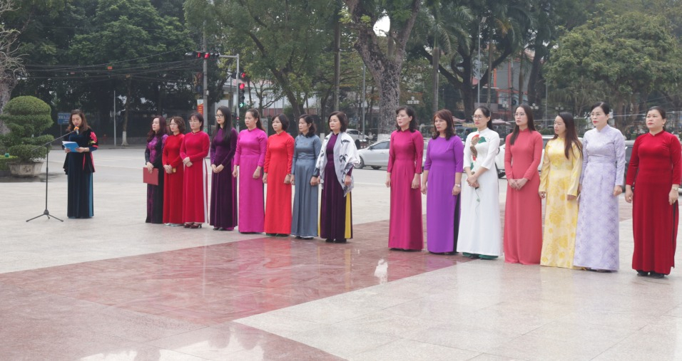 Đoàn đại biểu Phụ nữ tỉnh lần thứ XVII, nhiệm kỳ 2025 - 2030 báo công tại Tượng đài Chủ tịch Hồ Chí Minh (phường Thục Phán).