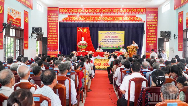 Quang cảnh Hội nghị đại biểu Quốc hội tiếp xúc cử tri.