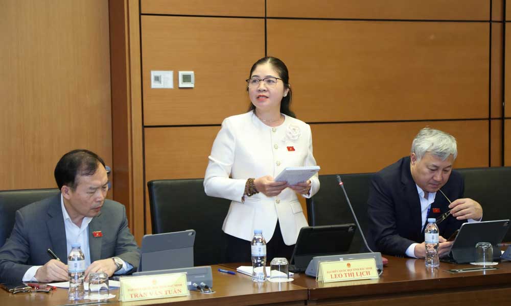 Đại biểu Leo Thị Lịch phát biểu trong phiên thảo luận tại tổ, sáng 7/11.