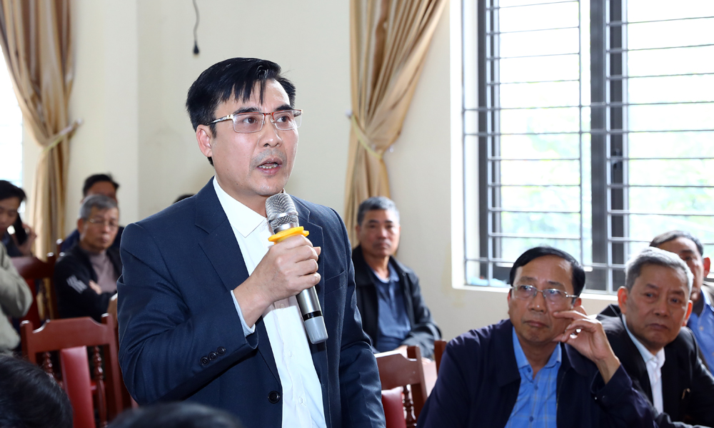 Cử tri Nguyễn Văn Tựa ở thôn Giếng đề nghị các cấp, ngành rà soát hệ thống kênh mương tưới tiêu tại các thôn để có kế hoạch đầu tư, cải tạo nâng cấp phục vụ sản xuất nông nghiệp. Cùng đó, quan tâm bảo đảm vệ sinh môi trường khi triển khai thi công các công trình hạ tầng khu dân cư trên địa bàn.