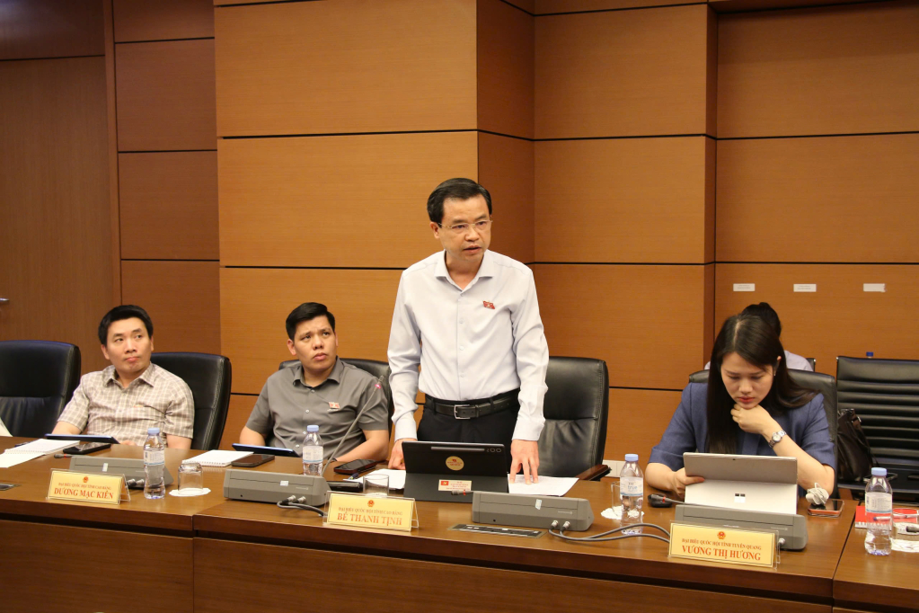 Đại biểu Bế Thanh Tịnh, Phó Bí thư Thường trực Tỉnh ủy, Trưởng Đoàn ĐBQH tỉnh phát biểu tại buổi thảo luận .