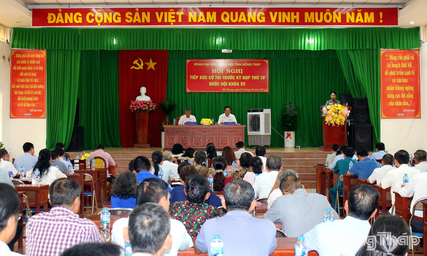 (ĐTO) Tiếp tục Chương trình tiếp xúc cử tri, chiều 3-10, Đoàn Đại biểu Quốc hội (ĐBQH) tỉnh Đồng Tháp gồm các đại biểu: Nguyễn Hoàng Mai, Phó Chủ nhiệm Ủy ban Văn hóa và Xã hội của Quốc hội; Nguyễn Văn Dương, Tỉnh ủy viên, Giám đốc Sở Y tế đến tiếp xúc cử tri phường Mỹ Phong, tỉnh Đồng Tháp trước Kỳ họp thứ 10, Quốc hội khóa XV.