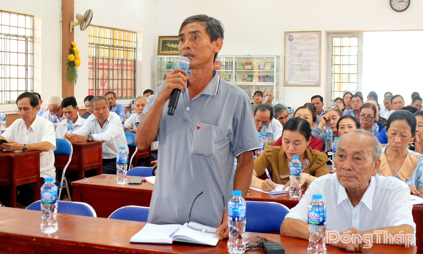 Sau khi nghe báo cáo, cử tri phường Mỹ Phong bày tỏ nhiều ý kiến, kiến nghị liên quan đến đời sống và phát triển kinh tế - xã hội tại địa phương.