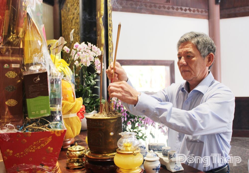 Đồng chí Ngô Chí Cường, Ủy viên Ban Chấp hành Trung ương Đảng, Bí thư Tỉnh ủy, Trưởng đoàn Đại biểu Quốc hội khóa XV tỉnh Đồng Tháp dâng hương bàn thờ Cụ Phó bảng Nguyễn Sinh Sắc.