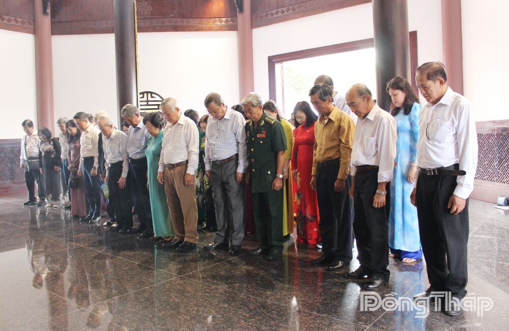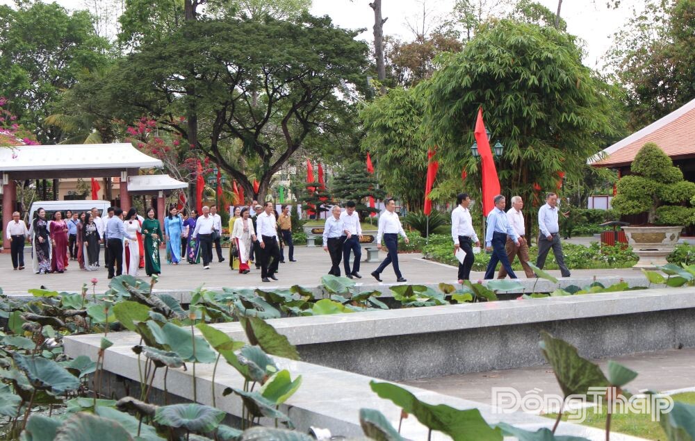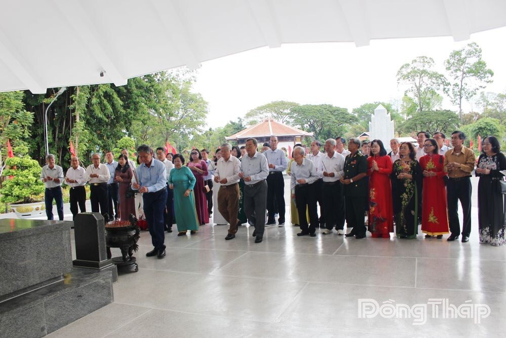 Đồng chí Ngô Chí Cường, Ủy viên Ban Chấp hành Trung ương Đảng, Bí thư Tỉnh ủy, Trưởng đoàn Đại biểu Quốc hội khóa XV tỉnh Đồng Tháp cùng các đồng chí trong Đoàn dâng hương tại mộ Cụ Phó bảng Nguyễn Sinh Sắc.