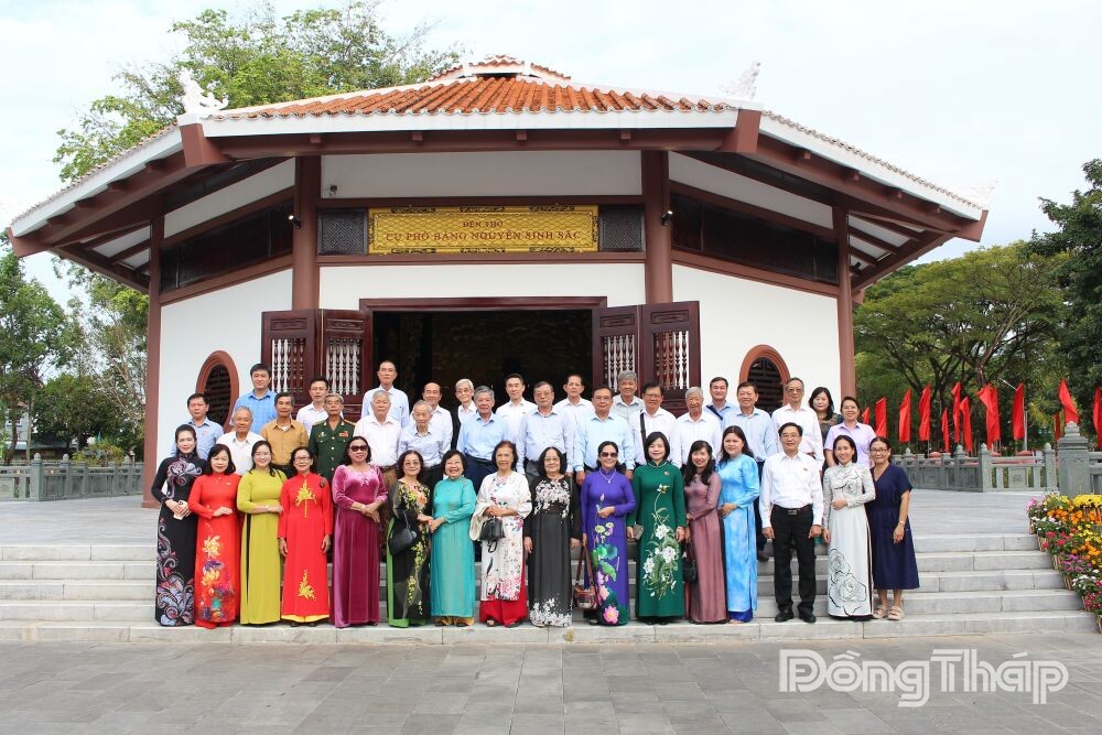 Đoàn đại biểu chụp ảnh lưu niệm trước Đền thờ Cụ Phó bảng Nguyễn Sinh Sắc.