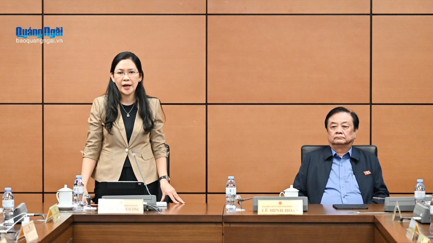 Phó Trưởng đoàn chuyên trách Đoàn ĐBQH tỉnh Huỳnh Thị Ánh Sương phát biểu tại phiên thảo luận.