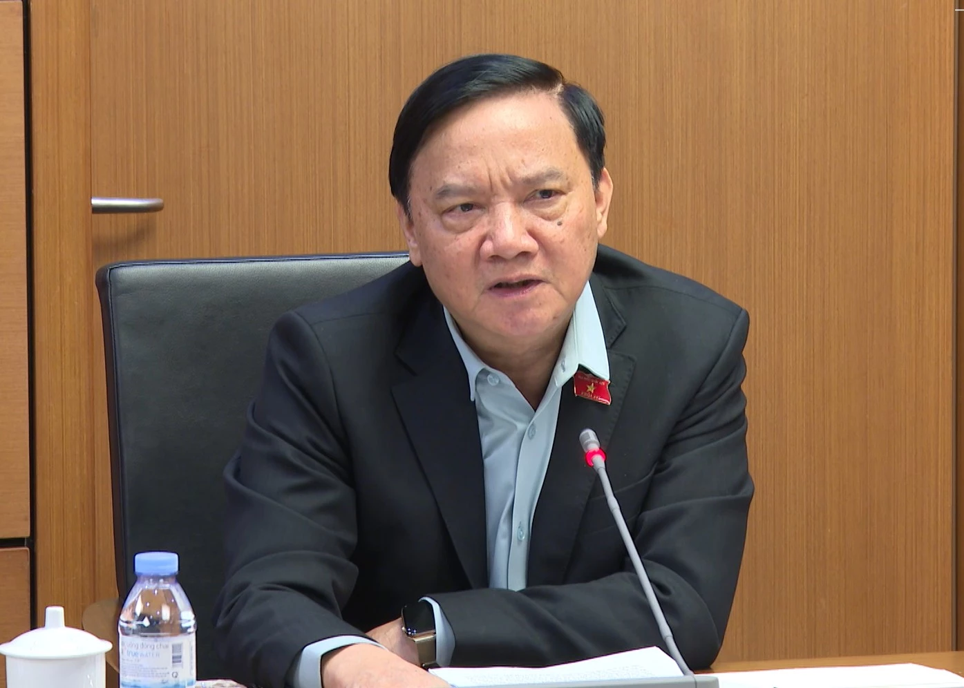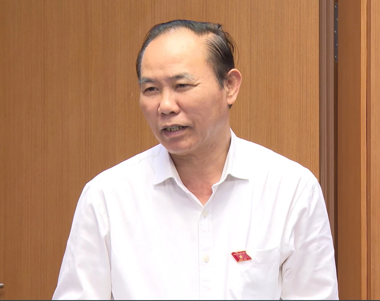 Đồng chí Nguyễn Khắc Định - Ủy viên Trung ương Đảng, Phó Chủ tịch Quốc hội phát biểu thảo luận tại Tổ 4. Ảnh do Đoàn Đại biểu Quốc hội tỉnh cung cấp