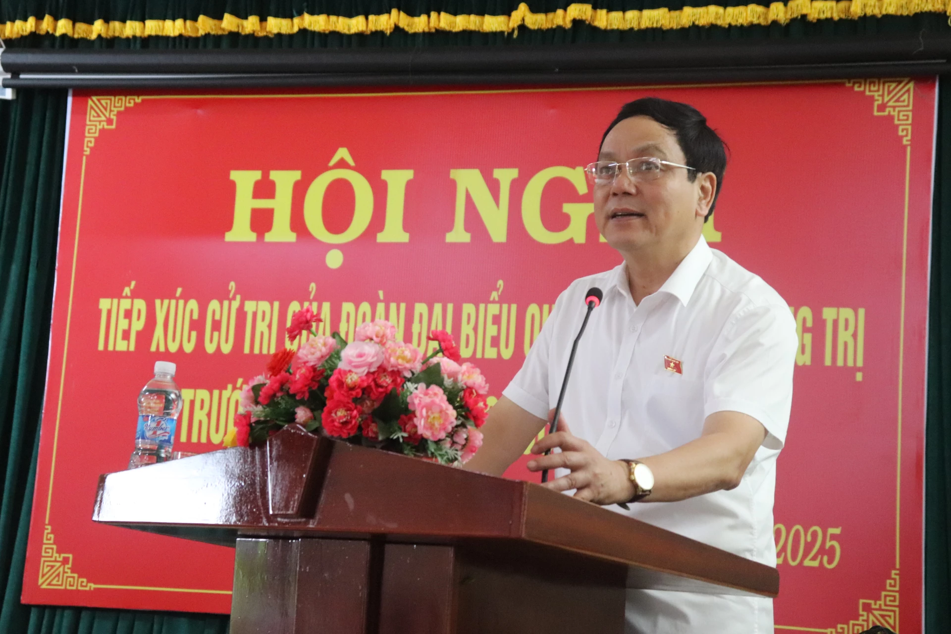 Đồng chí Hoàng Đức Thắng phát biểu tại buổi tiếp xúc cử tri - Ảnh: T.P