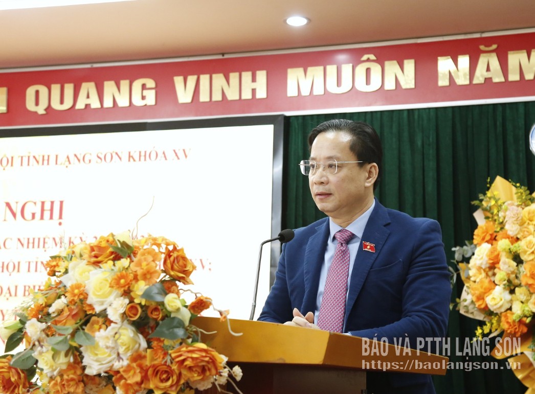 Đồng chí đề nghị: Đoàn ĐBQH tỉnh và các ĐBQH trong đoàn tiếp tục phát huy tinh thần trách nhiệm, đổi mới về tổ chức và phương thức hoạt động, tích cực đóng góp vào công cuộc đổi mới chung của đất nước và sự nghiệp xây dựng và phát triển tỉnh Lạng Sơn, xứng đáng với sự tin cậy, ủy thác của cử tri và Nhân dân. Tỉnh ủy, HĐND, UBND tỉnh và các cấp, ngành trong tỉnh sẽ tiếp tục quan tâm, phối hợp, tạo điều kiện thuận lợi nhất cho các hoạt động của Đoàn ĐBQH tỉnh và các ĐBQH.