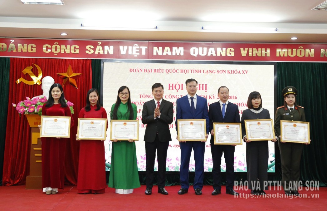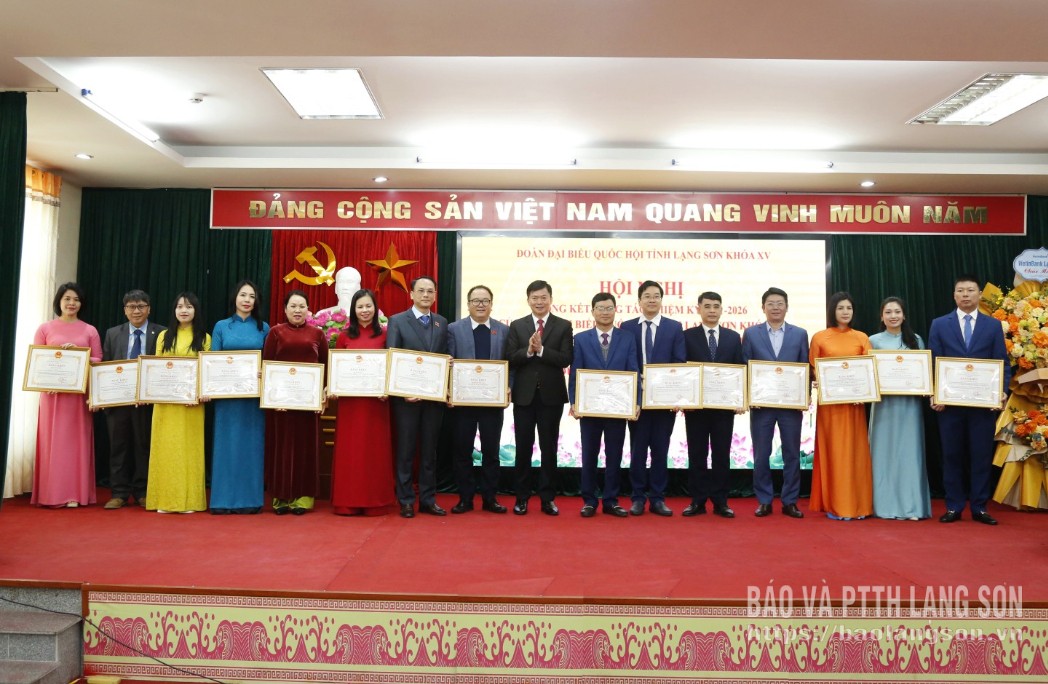 Nhân dịp này, có 18 cá nhân được nhận kỷ niệm chương “Vì sự nghiệp Quốc hội Việt Nam” của Ủy ban Thường vụ Quốc hội; 2 cá nhân được nhận bằng khen của Chủ nhiệm Văn phòng Quốc hội vì đã có thành tích trong công tác phối hợp với Văn phòng Quốc hội tham mưu tổng hợp, phục vụ Quốc hội, Ủy ban Thường vụ Quốc hội, Đoàn ĐBQH và ĐBQH trong nhiệm kỳ Quốc hội khóa XV; 7 tập thể, 15 cá nhân được nhận bằng khen của Chủ tịch UBND tỉnh vì đã có thành tích xuất sắc trong công tác phối hợp, tham mưu, phục vụ các hoạt động của Đoàn ĐBQH tỉnh khóa XV nhiệm kỳ 2021 - 2026.