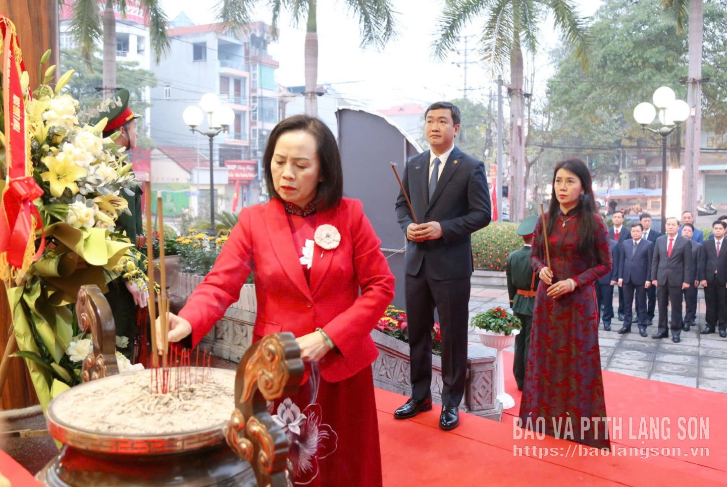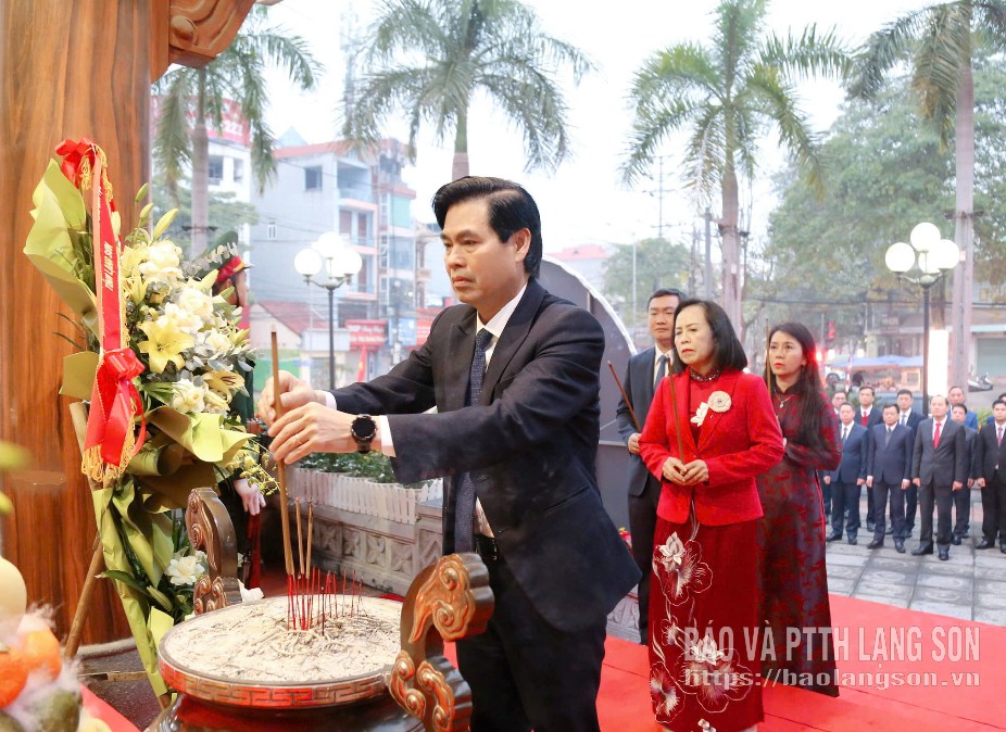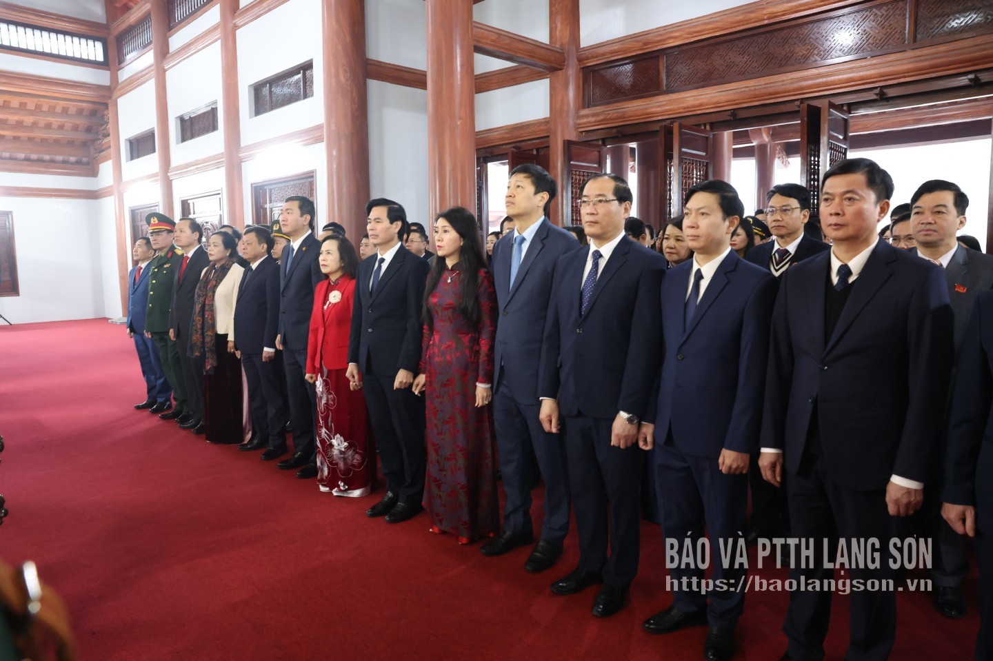 Trong không khí trang nghiêm, đoàn đại biểu của tỉnh đã thực hiện nghi thức dâng hương, dâng hoa, bày tỏ lòng thành kính, biết ơn vô hạn đối với công lao to lớn của Chủ tịch Hồ Chí Minh, sự hy sinh của các vị tiền bối cách mạng, thế hệ cha ông đã chiến đấu anh dũng vì độc lập tự do của Tổ quốc. Đoàn đã báo công với Bác, đồng chí Hoàng Văn Thụ và các anh hùng liệt sĩ về một số kết quả đạt được của tỉnh Lạng Sơn trong năm vừa qua.