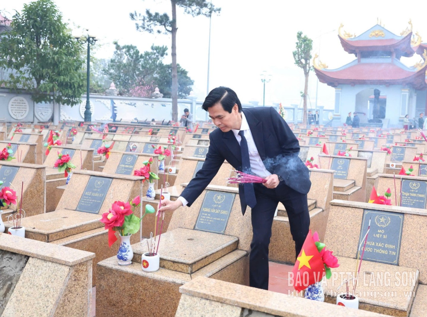 Đồng chí Hoàng Quốc Khánh, Ủy viên Trung ương Đảng, Bí thư Tỉnh ủy thắp hương mộ liệt sĩ tại Nghĩa trang liệt sĩ Lạng Sơn