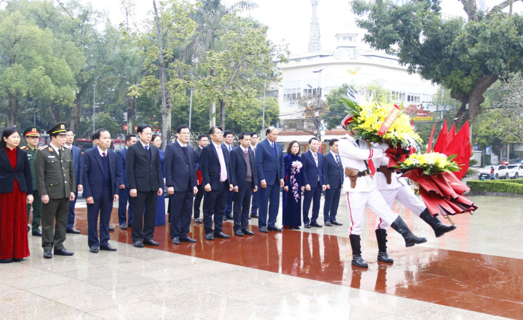 Tiếp đó, đoàn đại biểu dâng hoa Tượng đài Chủ tịch Hồ Chí Minh, phường Thục Phán, bày tỏ lòng thành kính và biết ơn vô hạn đối với công lao to lớn của Người - vị lãnh tụ thiên tài đã dành trọn đời mình cho sự nghiệp giải phóng dân tộc và hạnh phúc của nhân dân Việt Nam.