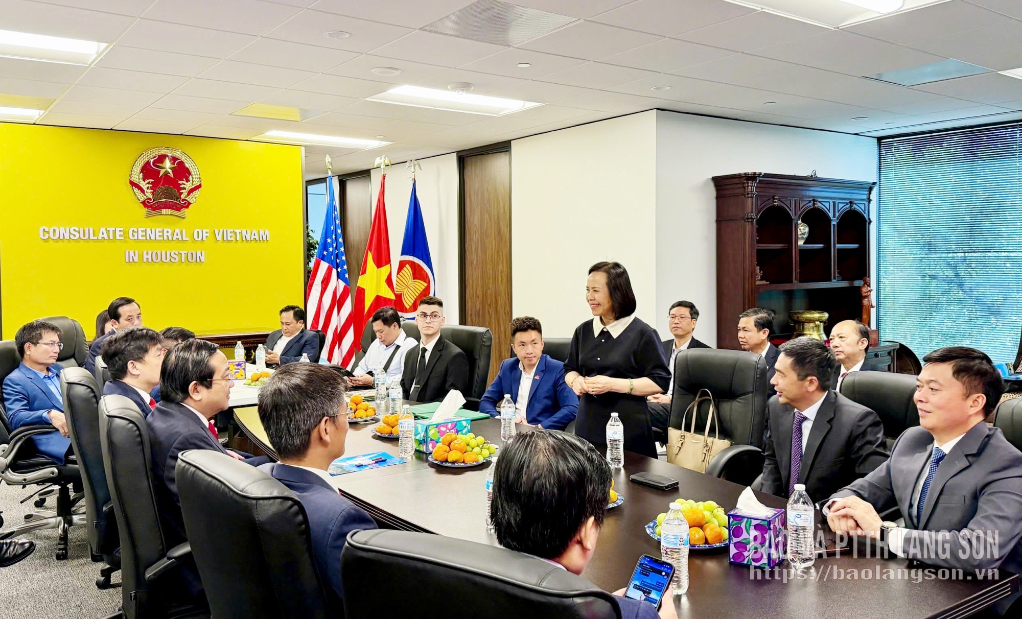 Trong khuôn khổ chương trình, đoàn đại biểu tỉnh đã đến thăm, làm việc tại Tổng Lãnh sự quán Việt Nam tại Houston. Tiếp và làm việc với đoàn có Tổng Lãnh sự Việt Nam tại Houston Hoàng Thùy Dương cùng cán bộ Tổng Lãnh sự quán.