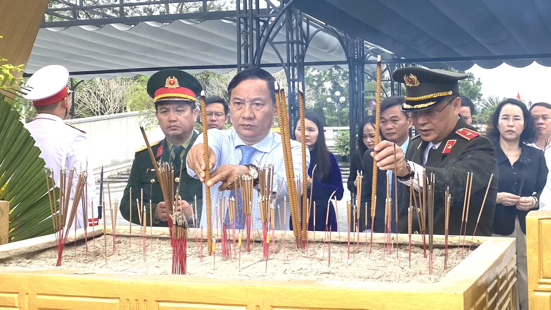 Trong không khí trang nghiêm và xúc động, đoàn đại biểu đã thỉnh chuông, dâng hoa và thắp nén hương thơm, dành phút mặc niệm tưởng nhớ những anh hùng liệt sĩ đã dâng hiến thanh xuân cho mùa xuân vĩnh cửu của dân tộc.