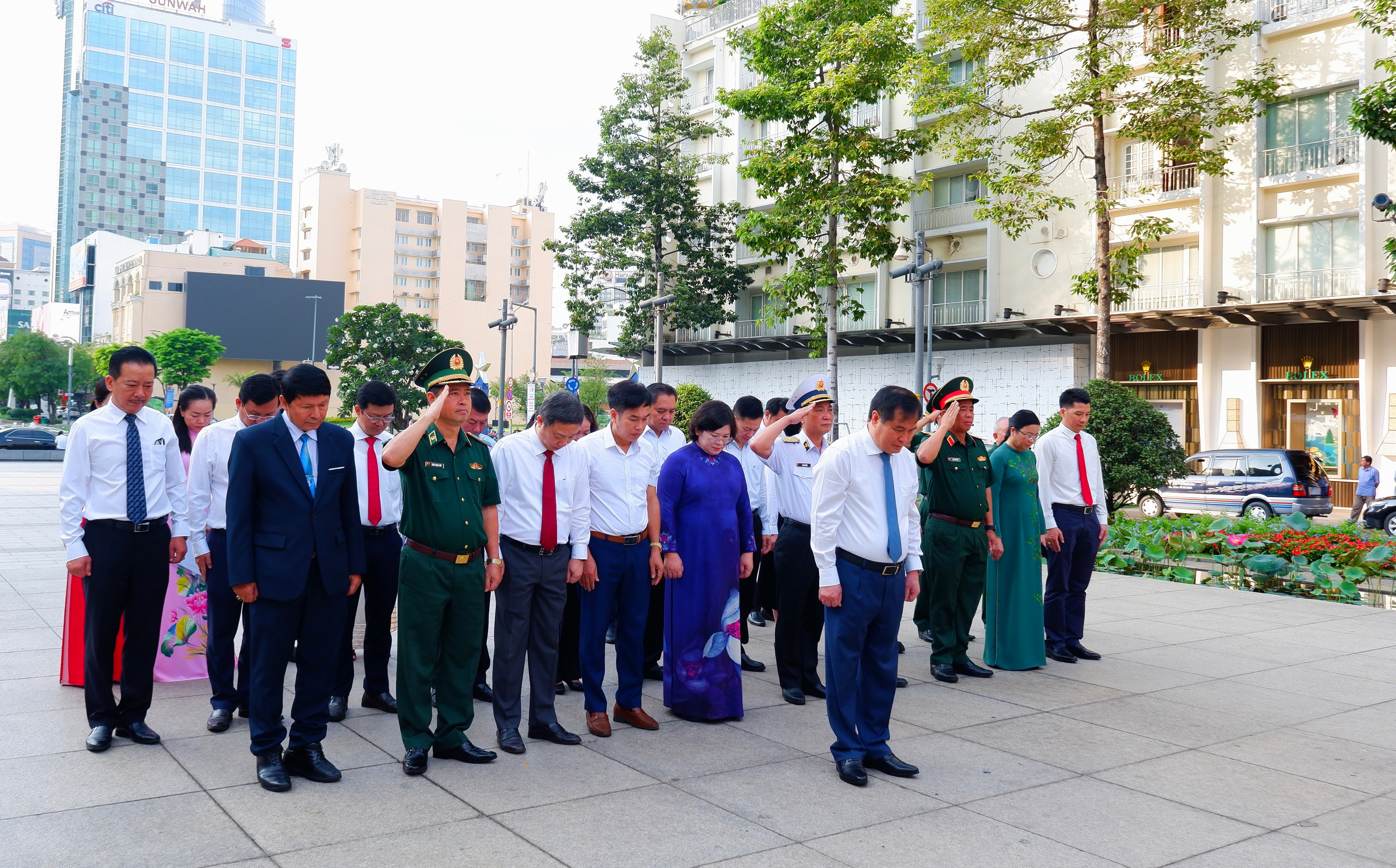 Đoàn đại biểu thành kính dâng hoa và dành phút mặc niệm, bày tỏ lòng biết ơn sâu sắc, tưởng nhớ công lao to lớn của Chủ tịch Hồ Chí Minh - Anh hùng giải phóng dân tộc, Lãnh tụ thiên tài của Đảng và nhân dân ta, Nhà văn hóa kiệt xuất của Việt Nam, Người suốt đời hy sinh cho sự nghiệp cách mạng, cho độc lập dân tộc, cho cuộc sống ấm no, hạnh phúc của nhân dân.