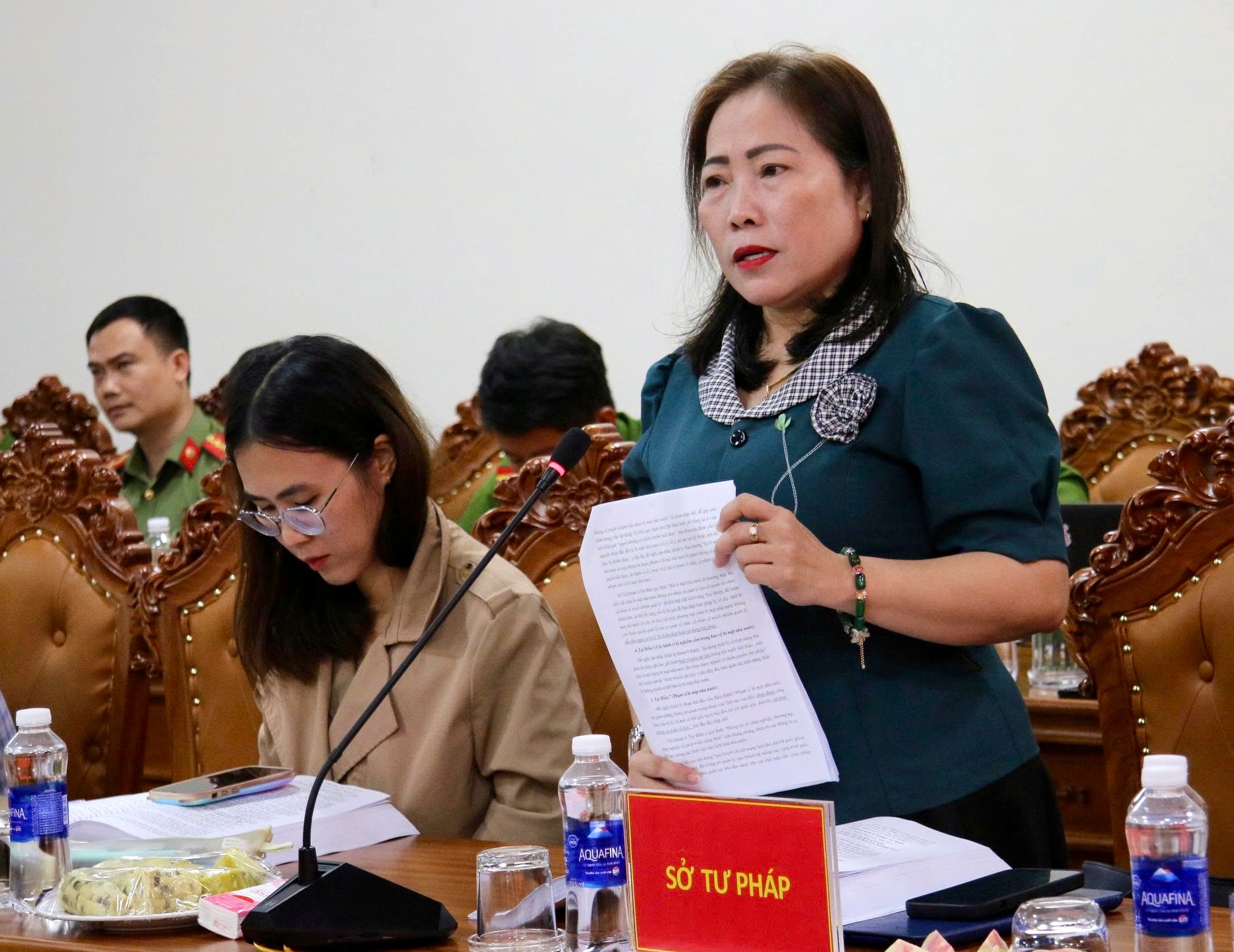Phó Giám đốc Sở Tư pháp Phan Thị Hoa tham gia phát biểu ý kiến