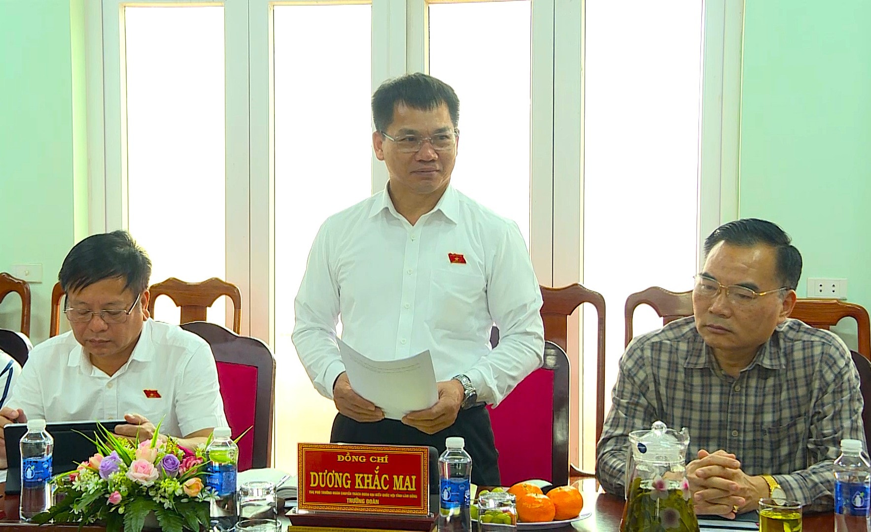 Đồng chí Dương Khắc Mai, Tỉnh ủy viên, Phó Trưởng đoàn chuyên trách Đoàn ĐBQH tỉnh phát biểu tại buổi làm việc