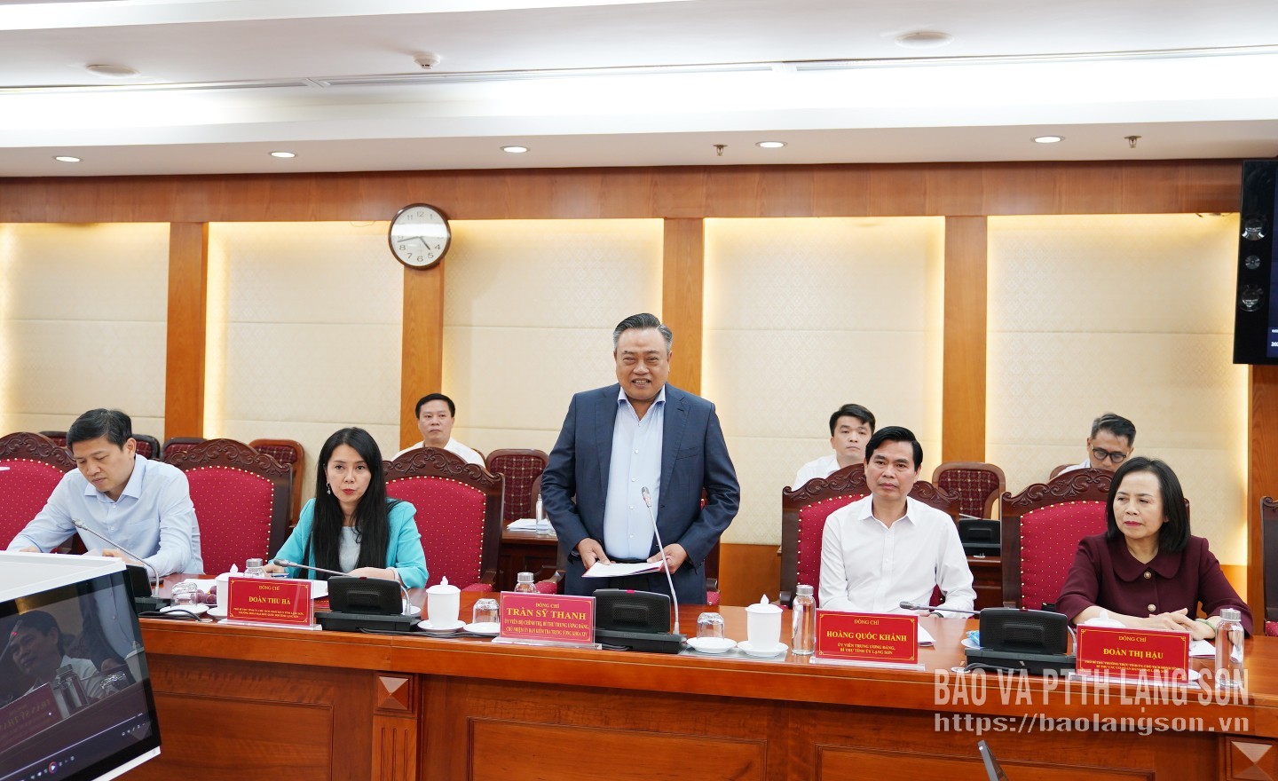 Đồng chí Trần Sỹ Thanh, Ủy viên Bộ Chính trị, Bí thư Trung ương Đảng, Chủ nhiệm Ủy ban Kiểm tra Trung ương – ĐBQH tỉnh Lạng Sơn khóa XVI phát biểu tại buổi làm việc