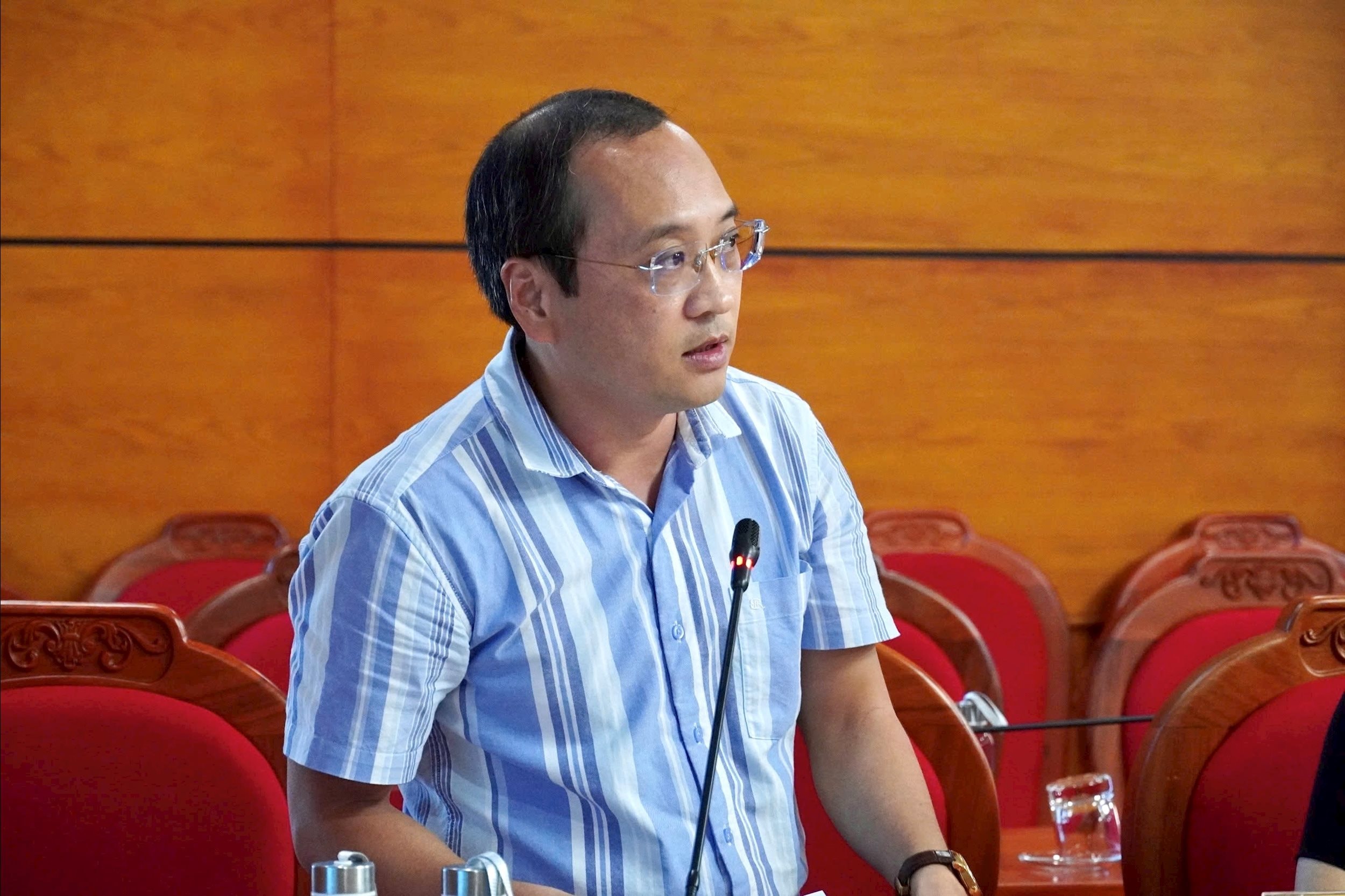 Phó Trưởng đoàn chuyên trách phụ trách Đoàn ĐBQH tỉnh Hoàng Đức Thắng phát biểu. Ảnh: Khánh Trinh