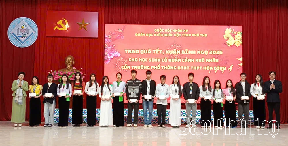 Đoàn ĐBQH tỉnh tặng quà cho học sinh nghèo vượt khó tại Trường Phổ thông Dân tộc nội trú THPT Hòa Bình.