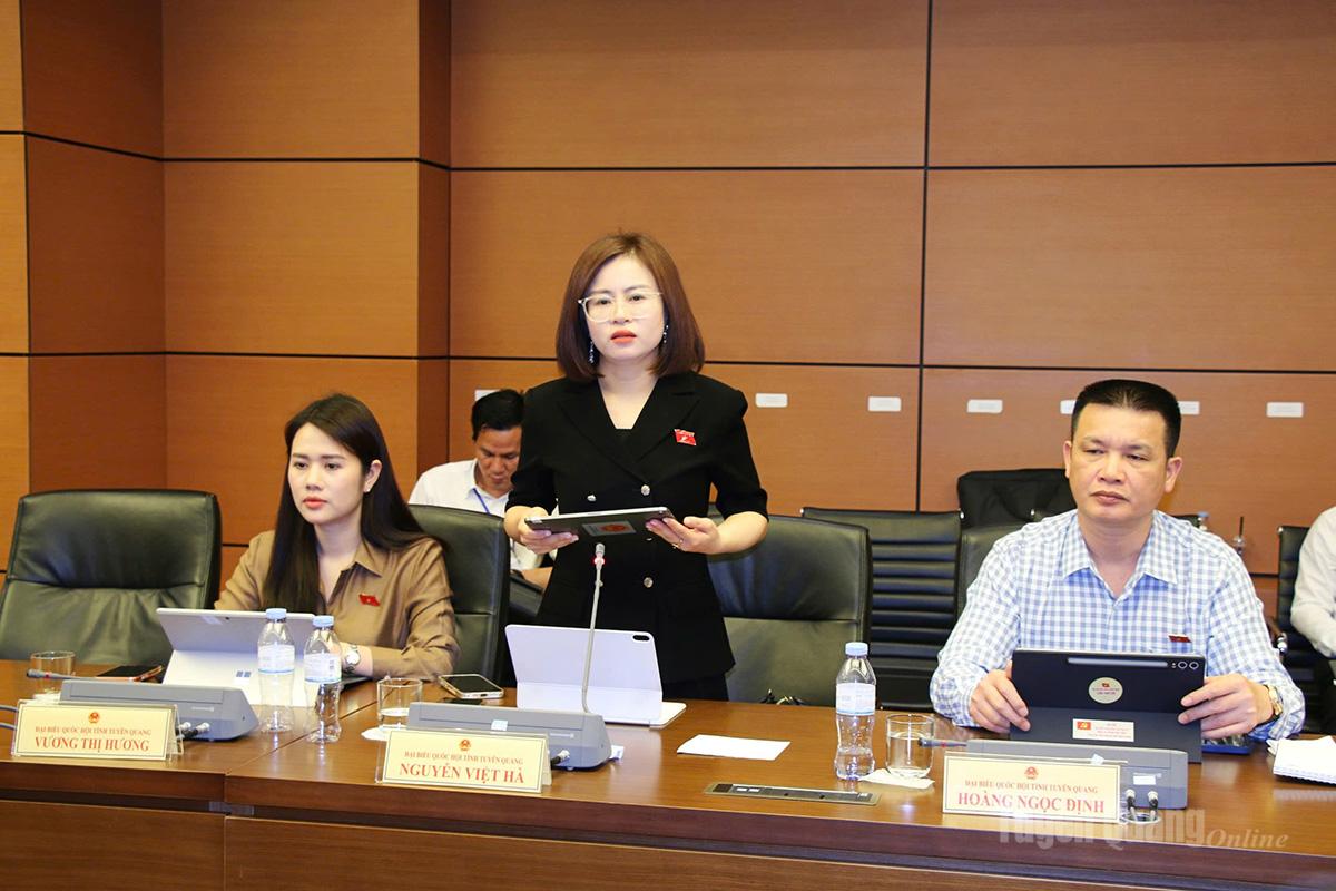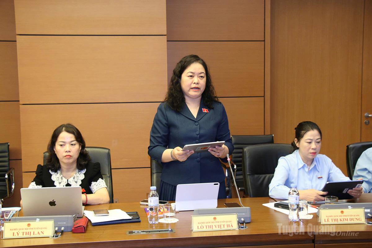 Đại biểu Lò Thị Việt Hà, Đoàn ĐBQH khóa XVI tỉnh Tuyên Quang phát biểu ý kiến.