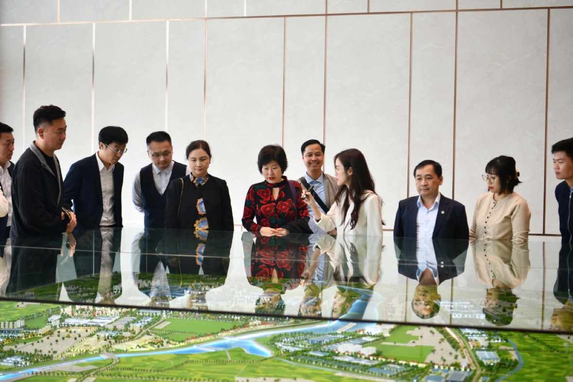 Lãnh đạo Green i-Park giới thiệu sa bàn KCN Liên Hà Thái với đối tác vào ngày 14/12.