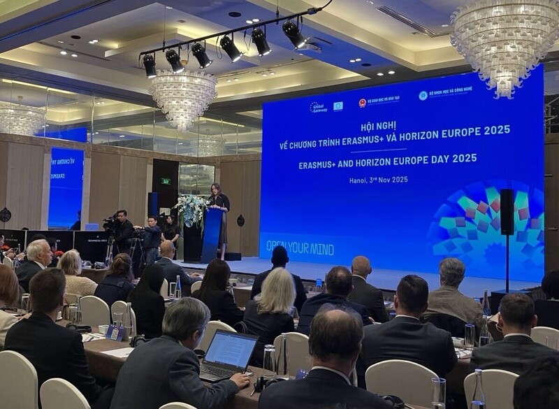 Quốc vụ khanh Bộ Khí hậu và Doanh nghiệp Thụy Điển phát biểu tại Hội nghị về Chương trình Erasmus+ và Horizon Europe 2025 thúc đẩy trao đổi nghiên cứu và giáo dục sau đại học giữa EU và Việt Nam, sáng 3/11 tại Hà Nội . Ảnh: Đại sứ quán Thụy Điển tại Việt Nam